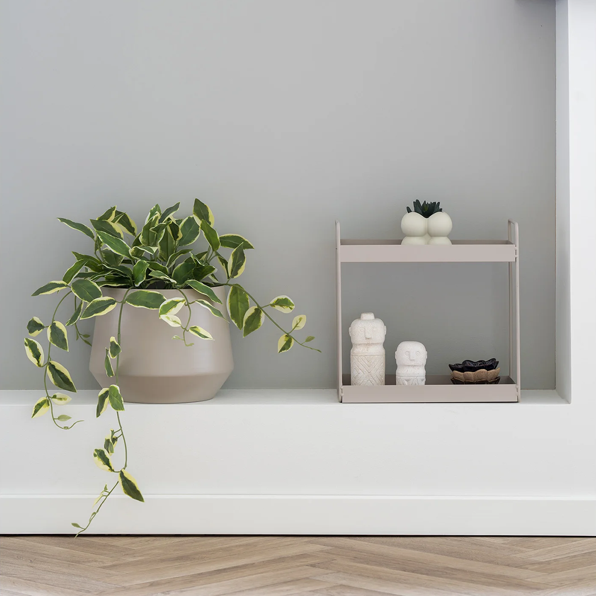 Deze stijlvolle bijzettafel Pepijn van Artichok is ideaal voor naast de bank. Met zijn slanke ontwerp en handige formaat is dit leuke tafeltje perfect voor naast de bank, in de hal of zelfs in de slaapkamer. Gebruik hem als bijzettafel om je drankje, boek of decoratieve items op te plaatsen, of transformeer hem in een stijlvolle plantenstandaard voor een groene touch in je interieur. Het matte beige oppervlak van dit tafeltje straalt rust uit en biedt een neutrale basis voor verschillende stylingopties. Of je nu kiest voor een minimalistische look of een groene oase, de Pepijn bijzettafel past zich moeiteloos aan. Voordelen en tips Praktische bijzettafel met twee bladenGemaakt van metaal Stijlvolle beige kleur Zowel geschikt als bijzettafel en als plantenstandaard Handig formaat dat ook in kleine ruimtes pastHet onderste plateau biedt extra opbergruimte