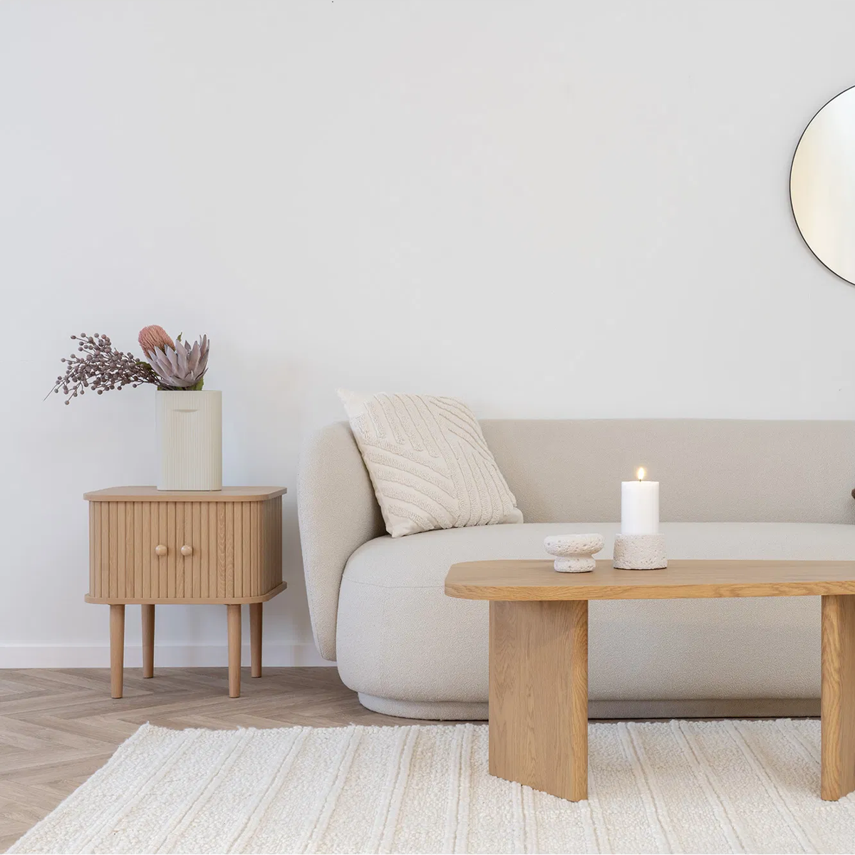 De Ties houten bijzettafel van Artichok heeft een strak design met slimme opbergruimte en schuifdeurtjes. Met zijn natuurlijke houten uitstraling past de Ties bijzettafel moeiteloos in allerlei interieurstijlen, van Scandinavisch tot modern. Dit tafeltje heeft twee vakken binnenin, verborgen achter schuifdeurtjes, ideaal om kleine spullen zoals tijdschriften, afstandsbedieningen of een dekentje netjes uit het zicht te houden. De ronde poten en afgeronde hoeken geven het geheel een zachte, speelse uitstraling. Dankzij zijn compacte formaat is Ties niet alleen geschikt als bijzettafel naast je bank, maar ook perfect als nachtkastje in de slaapkamer. Voeg een sfeervolle lamp of een mooie plant toe, en hij wordt meteen een blikvanger in je interieur. Voordelen en tips Houten bijzettafel met schuifdeurtjes en twee opbergvakken Rustige naturel kleur die geschikt is voor elke interieurstijl Ronde poten en afgeronde hoeken voor een