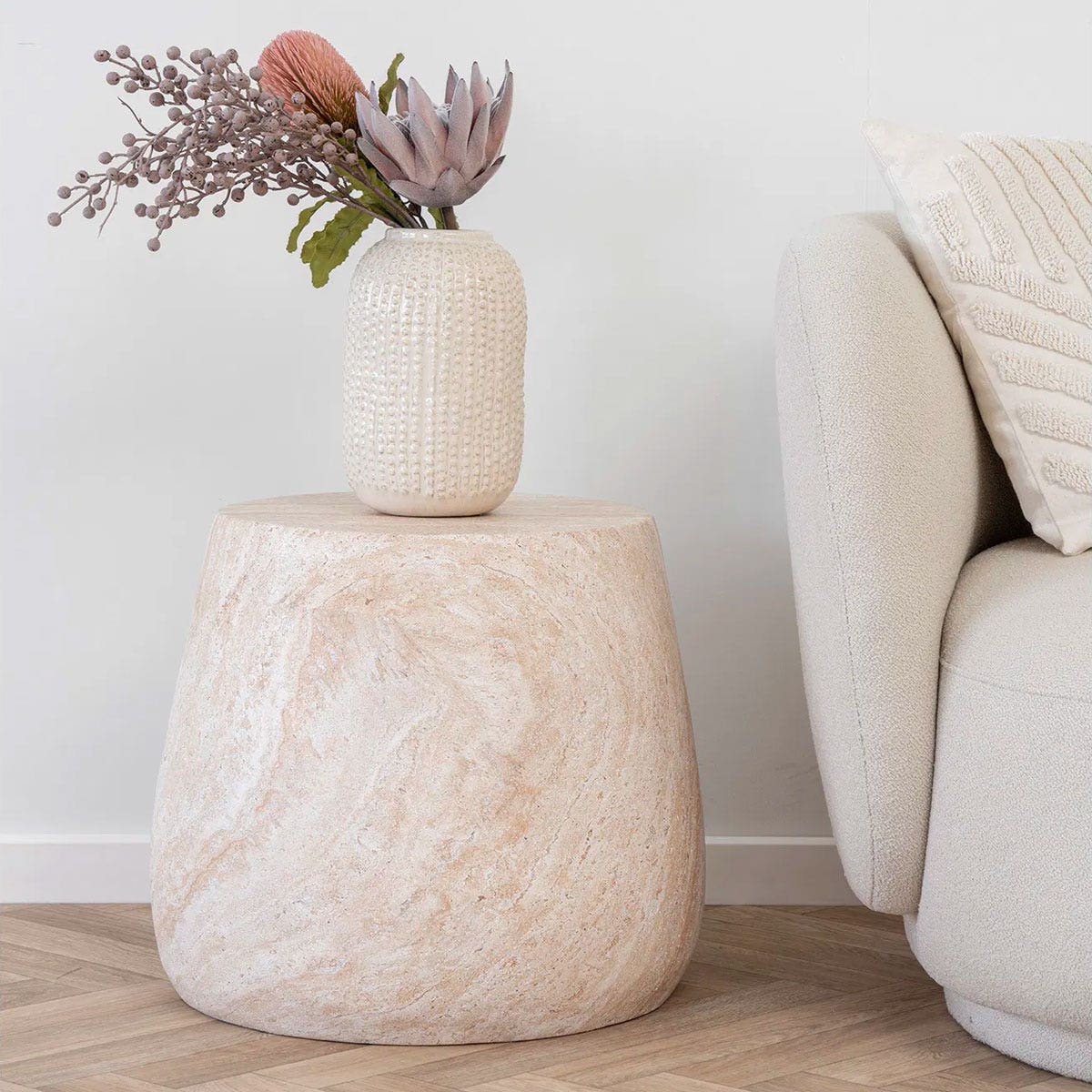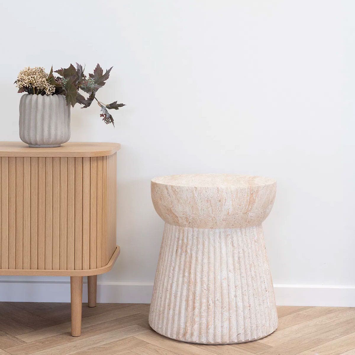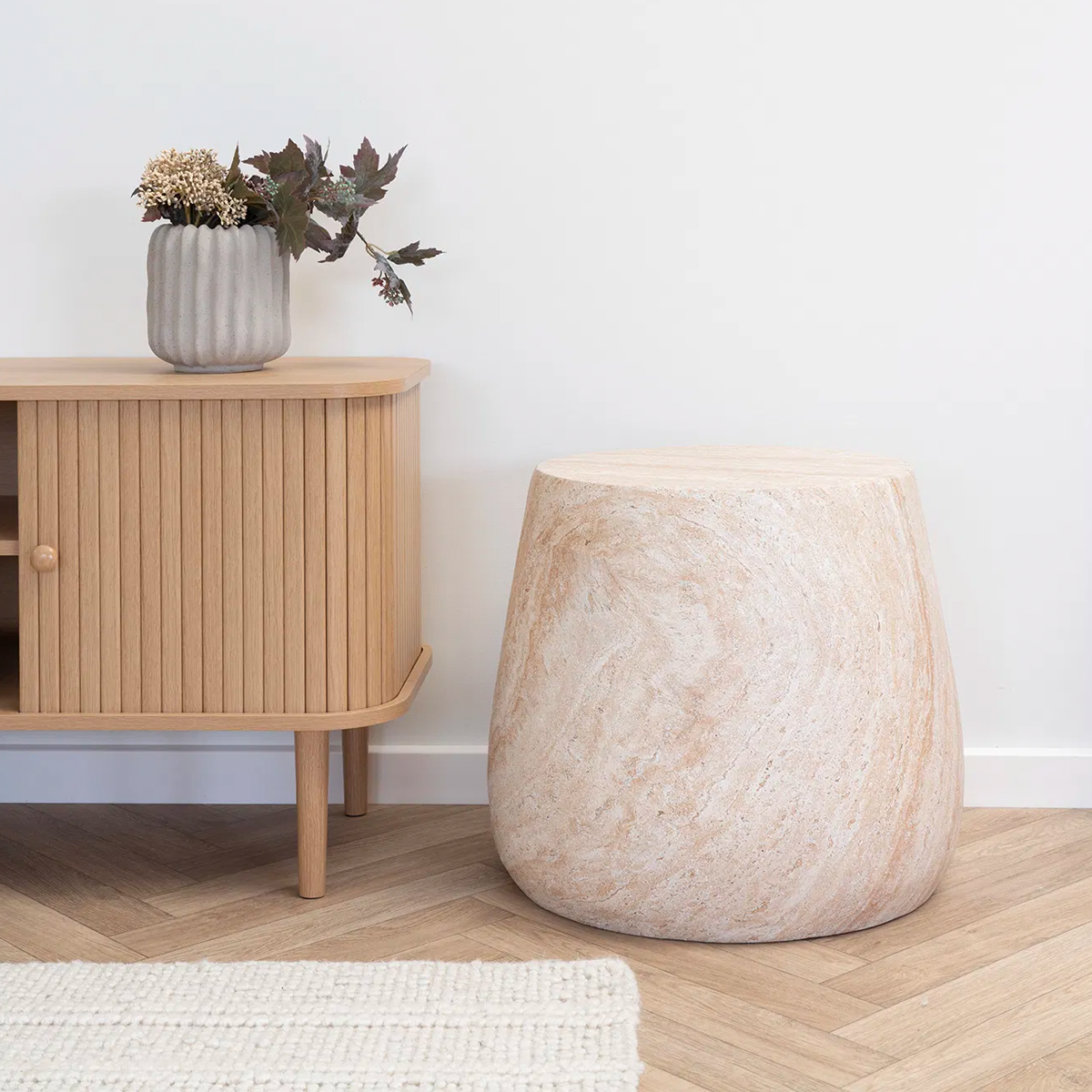 Dorus ronde fiberclay bijzettafel beige Ø 37 x 43 cm