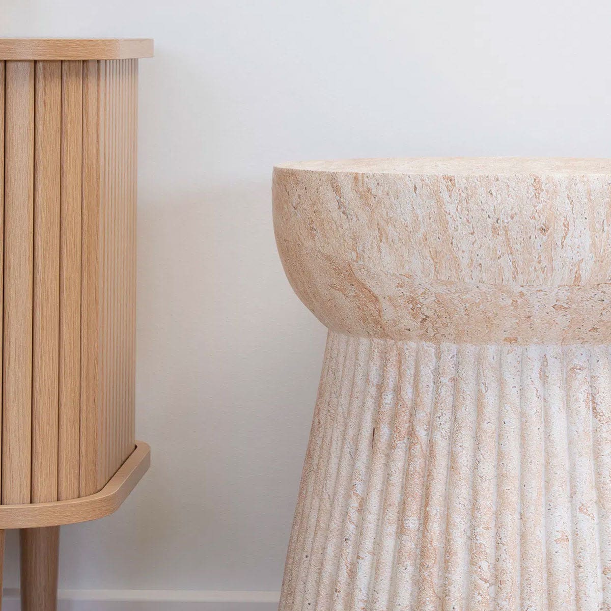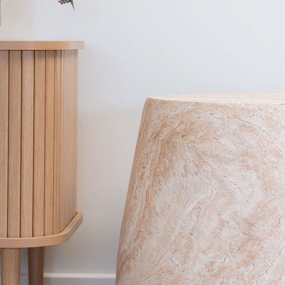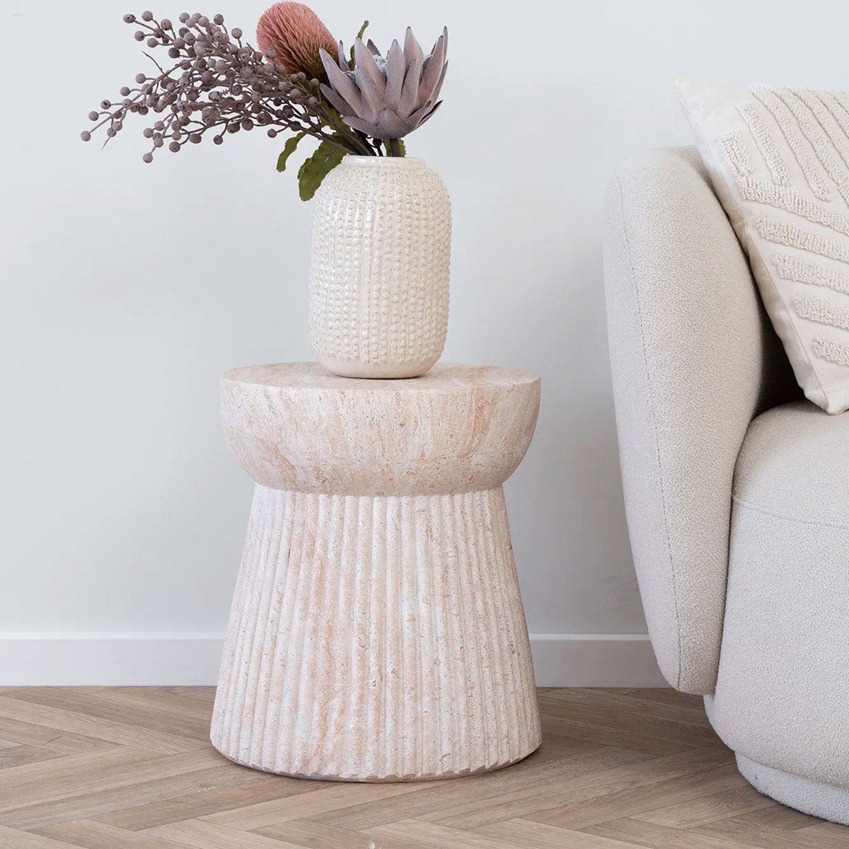 Dorus ronde fiberclay bijzettafel beige Ø 37 x 43 cm