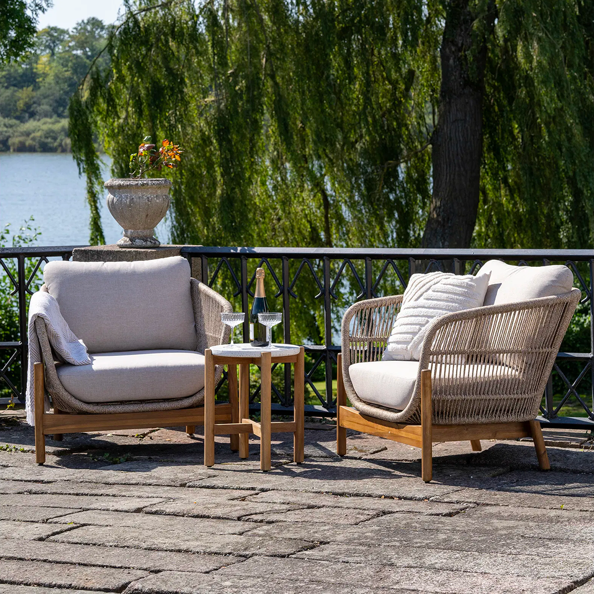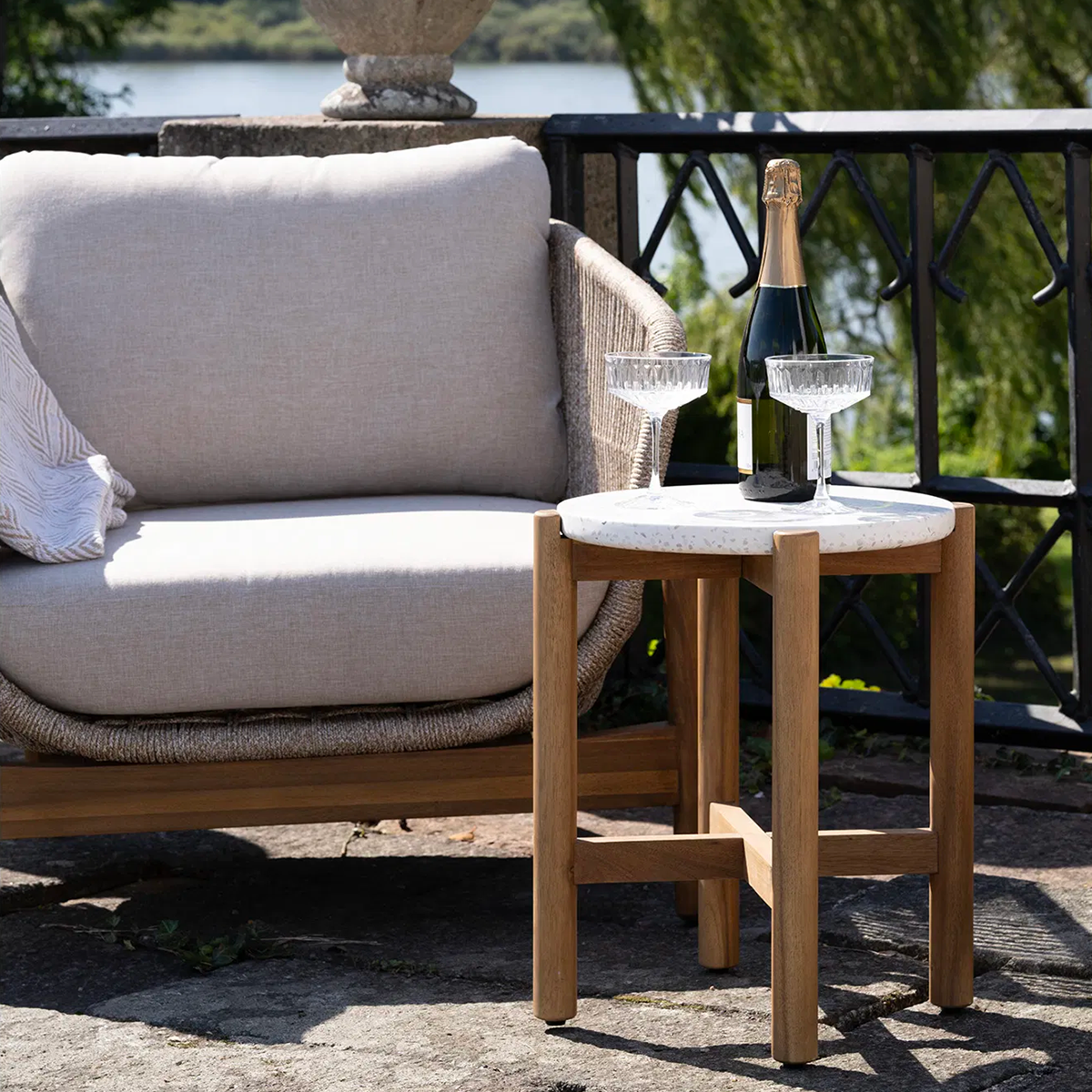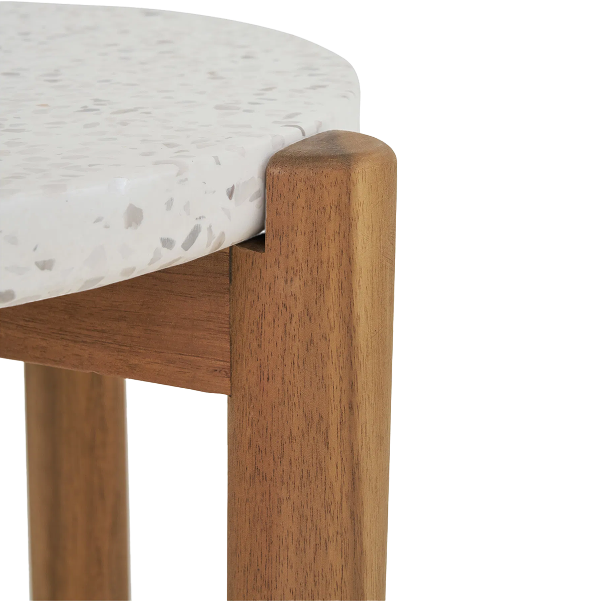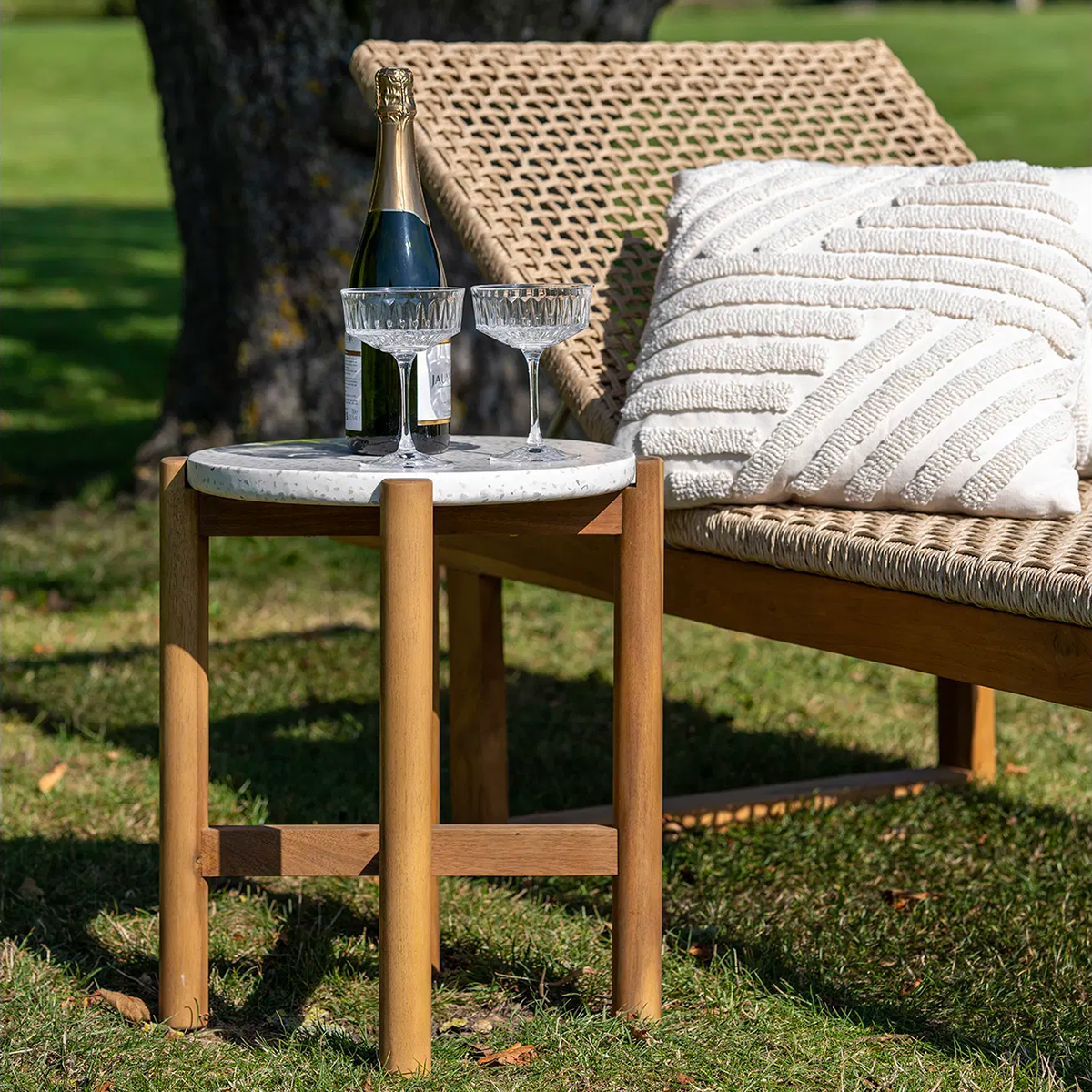 Teresa houten tuin bijzettafel naturel met terazzo blad Ø 37 cm