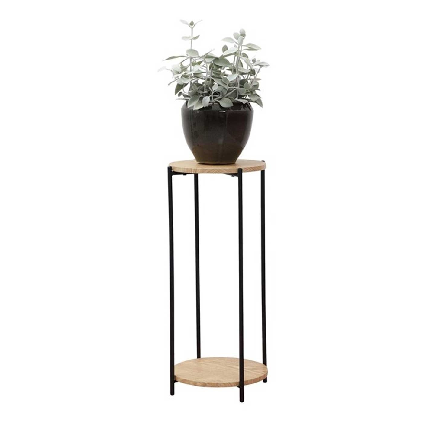 Met de Lina plantenzuil geef je je mooiste kamerplant de aandacht die het verdient! De zuil is gemaakt van twee ronde tafelbladen van MDF met een laagje PVC in houtlook en een zwart metalen frame, dat is afgewerkt met een mooie matte finish. Planten zijn onmisbaar in ieder interieur, dus waarom zou je ze niet wat extra aandacht geven? De Lina plantenzuil is 70 cm hoog, waardoor je de plant er echt laat uitspringen. Je kunt zowel op het onderste als bovenste plateau een plant of accessoires kwijt. Bovendien zorgt de combinatie van hout met zwart metaal voor een stoere, industriële touch. Voordelen Leuk om te combineren met de Lina salon- en bijzettafel Tip; combineer met standaards van verschillende hoogtes voor een speelse plantenhoek