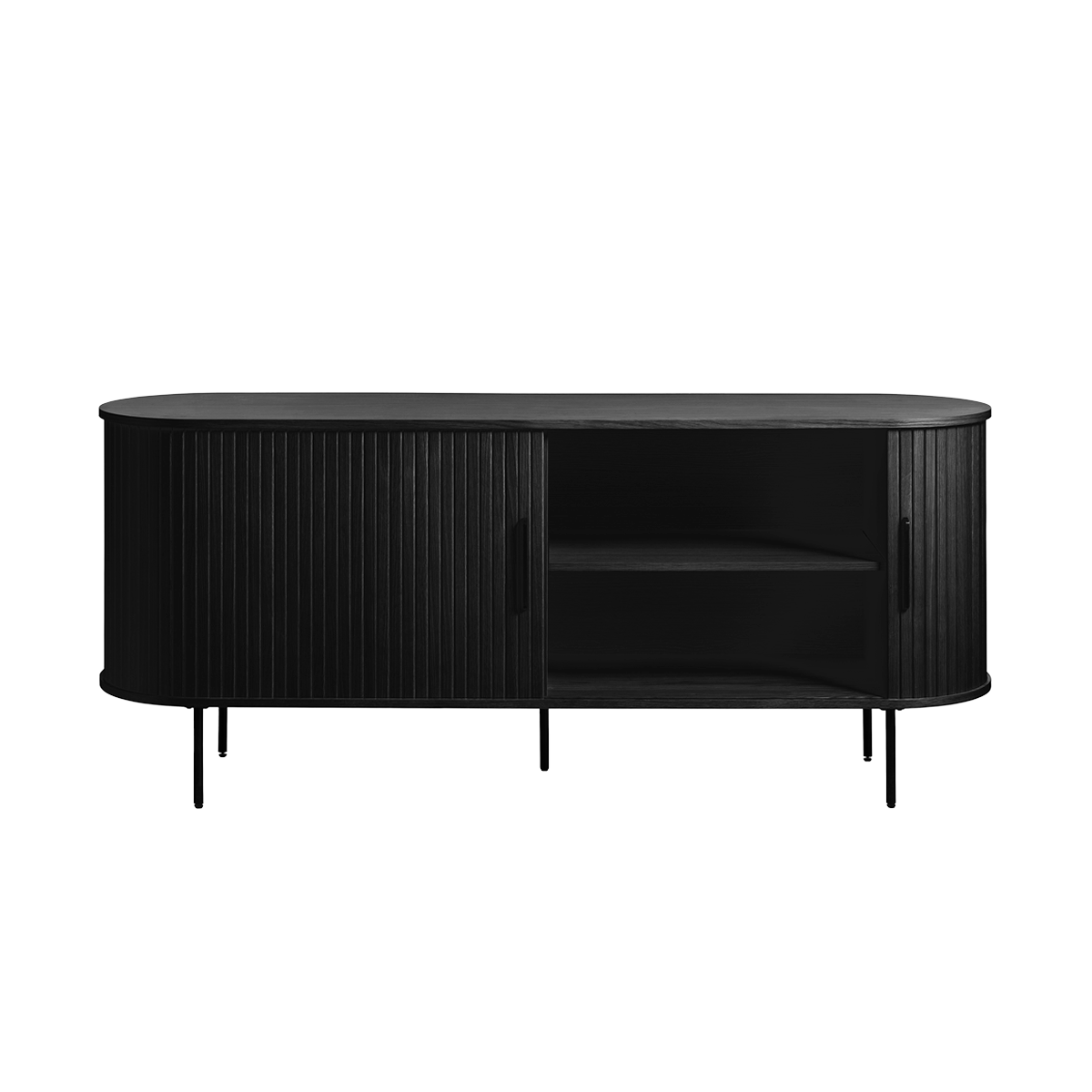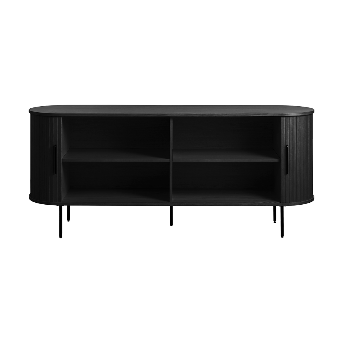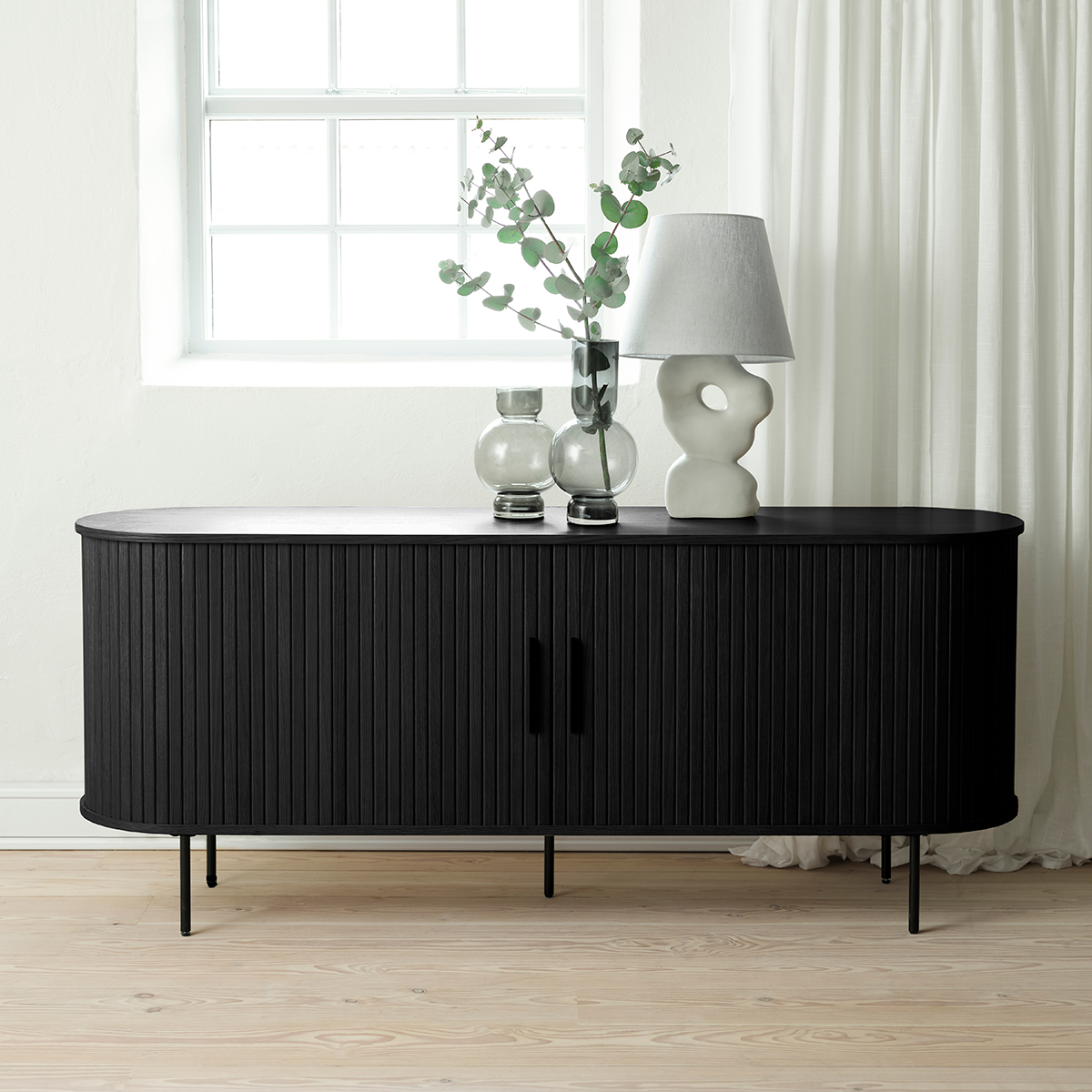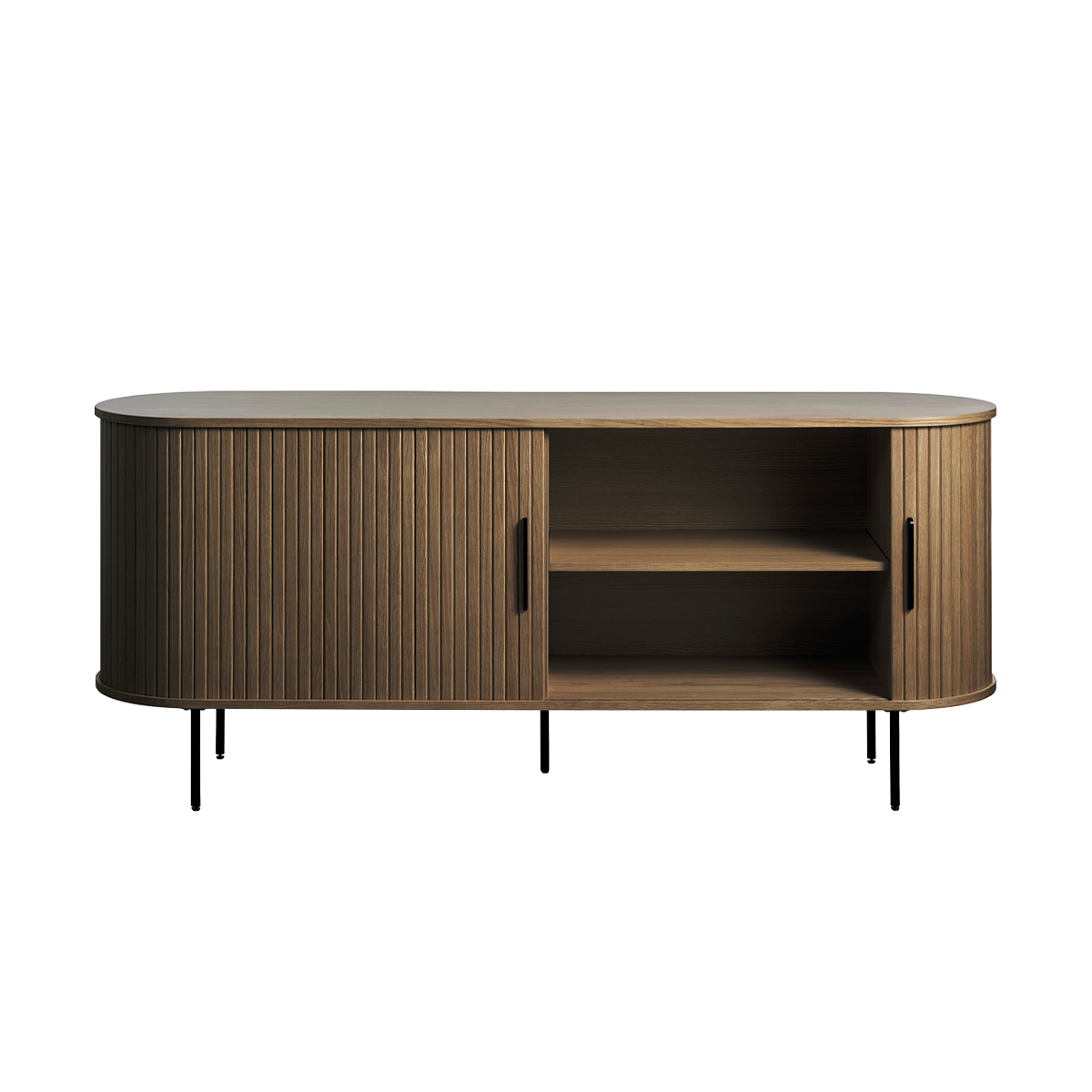 Dit stijlvolle dressoir Lenn van het merk Olivine is een echte eyecatcher in huis. Het dressoir van hout is een functioneel meubelstuk dat perfect past in elke moderne woonruimte. Met zijn strakke lijnen en tijdloze ontwerp brengt dit sideboard een warme en uitnodigende sfeer in huis. Het dressoir is gemaakt van hout en is afgewerkt met een laag eikenfineer. De vijf slanke metalen pootjes en de twee handvaten in zwarte kleur vormen een mooi contrast met het natuurlijke hout. De kast is ontworpen met schuifdeuren, wat het meubel de ideale keuze maakt voor een smalle ruimte. Binnenin het dressoir zitten vier ruime opbergvakken en aan de zijkanten zitten nog twee verborgen vakken. Dankzij de handige afmetingen kan dit houten sideboard zowel dienen als dressoir, lage kast, en zelfs als tv-meubel. Het Lenn dressoir is verkrijgbaar in vier kleuren: wit eiken, zwart eiken, gerookt eiken en naturel hout. Daarnaast is deze kast ook in een kleiner formaat verkrijgbaar en