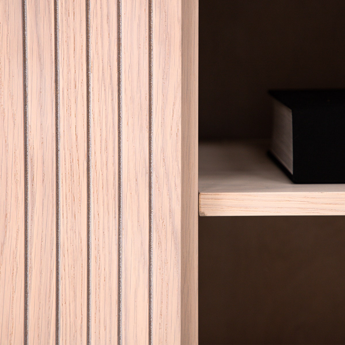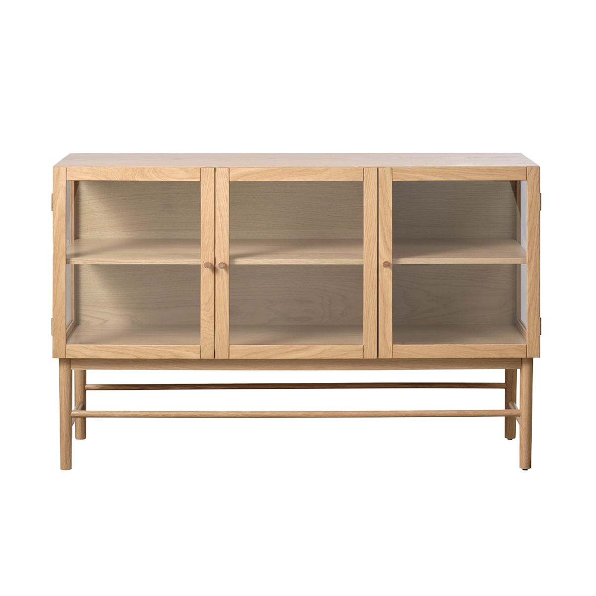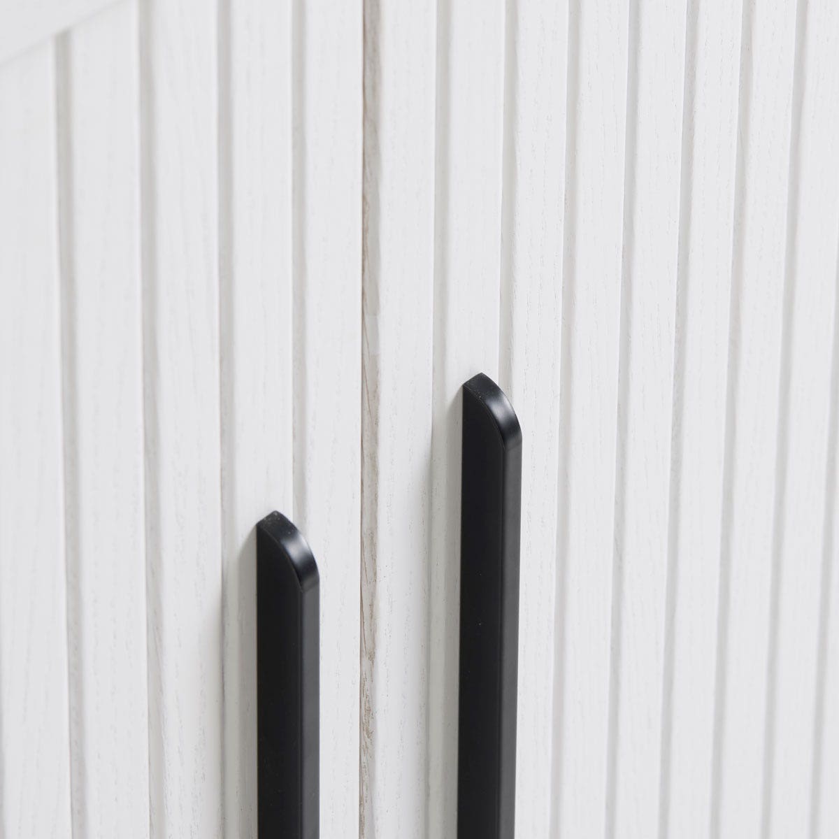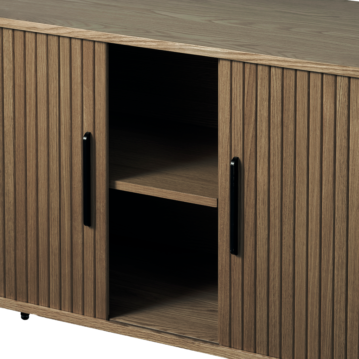 Dit stijlvolle dressoir Lenn van het merk Olivine is een echte eyecatcher in huis. Het dressoir van hout is een functioneel meubelstuk dat perfect past in elke moderne woonruimte. Met zijn strakke lijnen en tijdloze ontwerp brengt dit sideboard een warme en uitnodigende sfeer in huis. Het dressoir is gemaakt van hout en is afgewerkt met een laag eikenfineer. De vijf slanke metalen pootjes en de twee handvaten in zwarte kleur vormen een mooi contrast met het natuurlijke hout. De kast is ontworpen met schuifdeuren, wat het meubel de ideale keuze maakt voor een smalle ruimte. Binnenin het dressoir zitten vier ruime opbergvakken en aan de zijkanten zitten nog twee verborgen vakken. Dankzij de handige afmetingen kan dit houten sideboard zowel dienen als dressoir, lage kast, en zelfs als tv-meubel. Het Lenn dressoir is verkrijgbaar in vier kleuren: wit eiken, zwart eiken, gerookt eiken en naturel hout. Daarnaast is deze kast ook in een kleiner formaat verkrijgbaar en