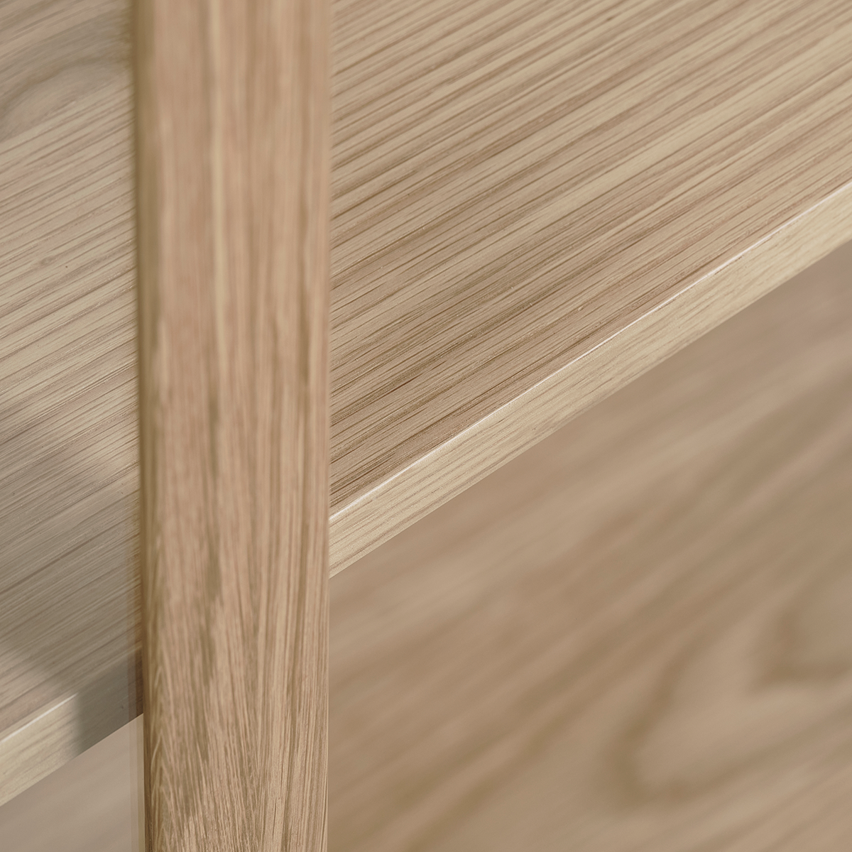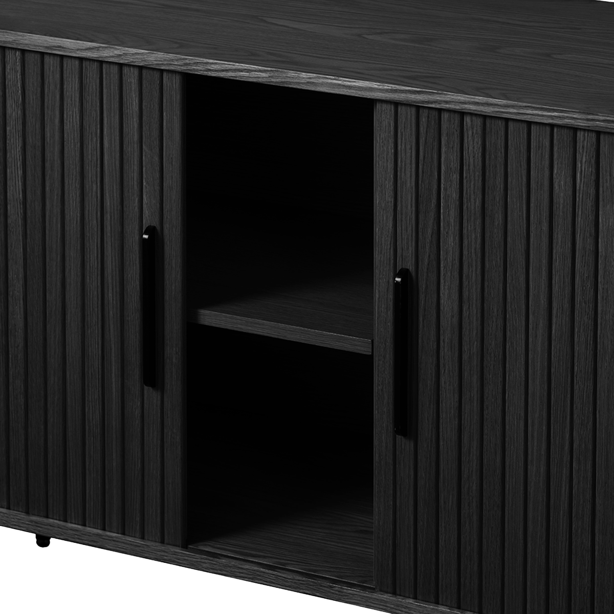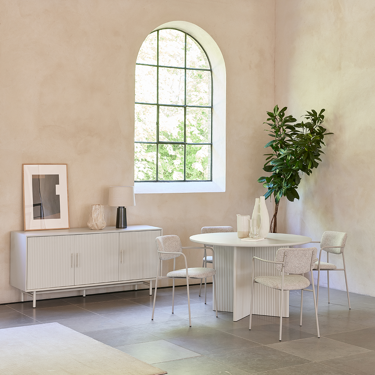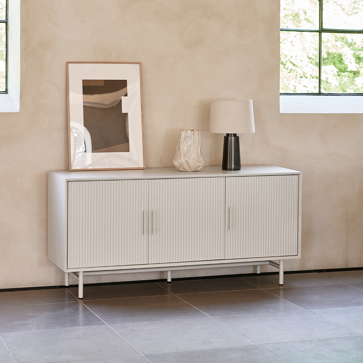 Dit stijlvolle dressoir Lenn van het merk Olivine is een echte eyecatcher in huis. Het dressoir van hout is een functioneel meubelstuk dat perfect past in elke moderne woonruimte. Met zijn strakke lijnen en tijdloze ontwerp brengt dit sideboard een warme en uitnodigende sfeer in huis. Het dressoir is gemaakt van hout en is afgewerkt met een laag eikenfineer. De vijf slanke metalen pootjes en de twee handvaten in zwarte kleur vormen een mooi contrast met het natuurlijke hout. De kast is ontworpen met schuifdeuren, wat het meubel de ideale keuze maakt voor een smalle ruimte. Binnenin het dressoir zitten vier ruime opbergvakken en aan de zijkanten zitten nog twee verborgen vakken. Dankzij de handige afmetingen kan dit houten sideboard zowel dienen als dressoir, lage kast, en zelfs als tv-meubel. Het Lenn dressoir is verkrijgbaar in vier kleuren: wit eiken, zwart eiken, gerookt eiken en naturel hout. Daarnaast is deze kast ook in een kleiner formaat verkrijgbaar en