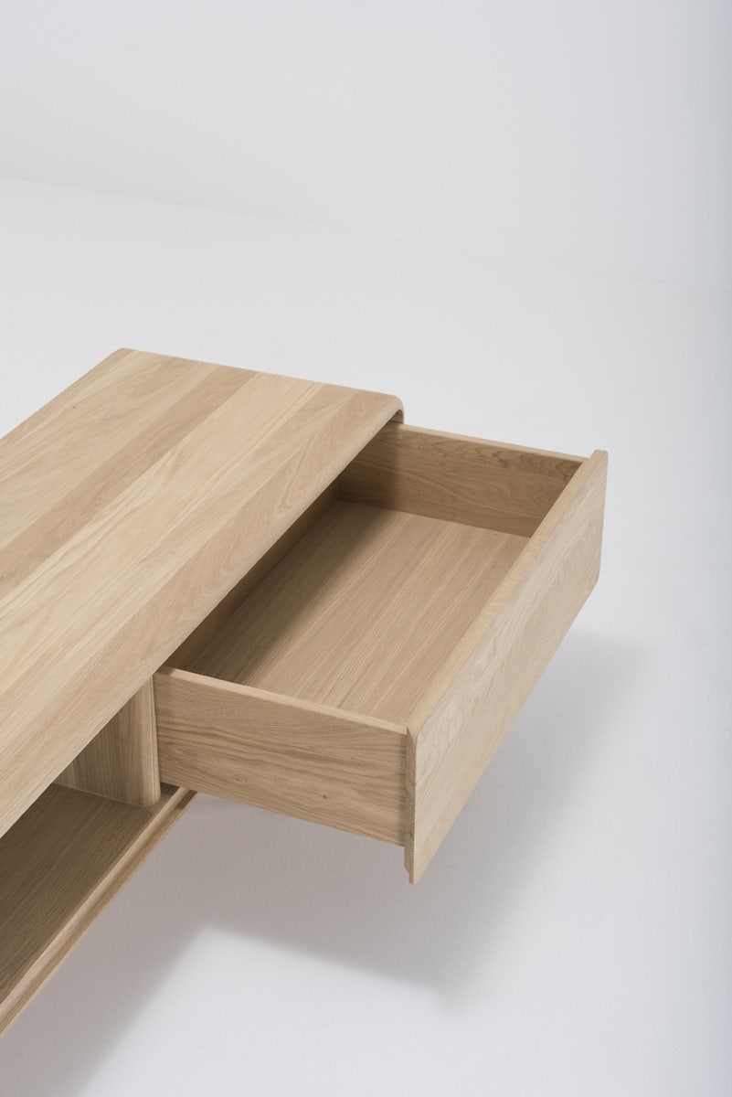 Het Gazzda Fawn Lowboard is een uniek dressoir. Door de afgeronde hoeken en prachtig afgewerkt hout, is dit dressoir een echt statement in jouw woonkamer. Het Fawn Lowboard is een dressoir met drie lades. De lades zijn voorzien van een soft-close systeem. Dit zorgt ervoor dat deze geleidelijk en geruisloos sluiten. Bovendien zijn de naturel en whitewash meubels gemaakt van massief eikenhout en de walnut van echt walnoothout dat prachtig is afgewerkt en het meubel een natuurlijke uitstraling geeft. Voordelen Handgemaakt van massief eikenhout of walnoothout Ontworpen met drie lades, voorzien van een soft-close systeem Door het gebruik van wild eikenhout is elk product uniek Volledig gemonteerd geleverd Met hoge kwaliteit afgewerkt waardoor je er jaren plezier van hebt Biedt voldoende opbergruimte voor al je spullen