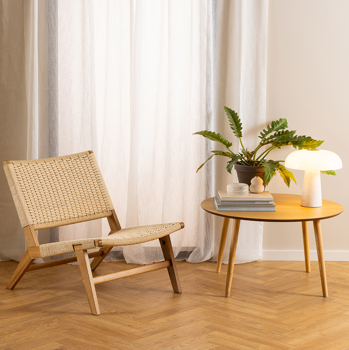 De William houten fauteuil van Lisomme is een aanwinst voor elke woonkamer. Deze fauteuil is gemaakt van hout en heeft een comfortabele, gewoven zitting in een beige tint. Hierdoor heeft deze houten loungestoel de ultieme natuurlijke uitstraling die perfect aansluit bij de Scandinavische woonstijl. Het compacte formaat maakt deze kleine fauteuil perfect voor verschillende ruimtes, van de woonkamer tot een knusse leeshoek. Het natuurlijke hout en de neutrale beige tint creëren een warme, uitnodigende sfeer. Voordelen en tips: Fauteuil gemaakt van hout Gewoven zitting in een beige kleur voor comfort Warme uitstraling dankzij de natuurlijke materialen en kleuren Perfect voor verschillende woonruimtes
