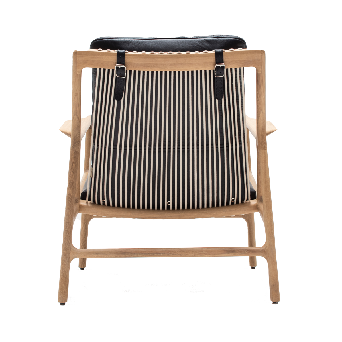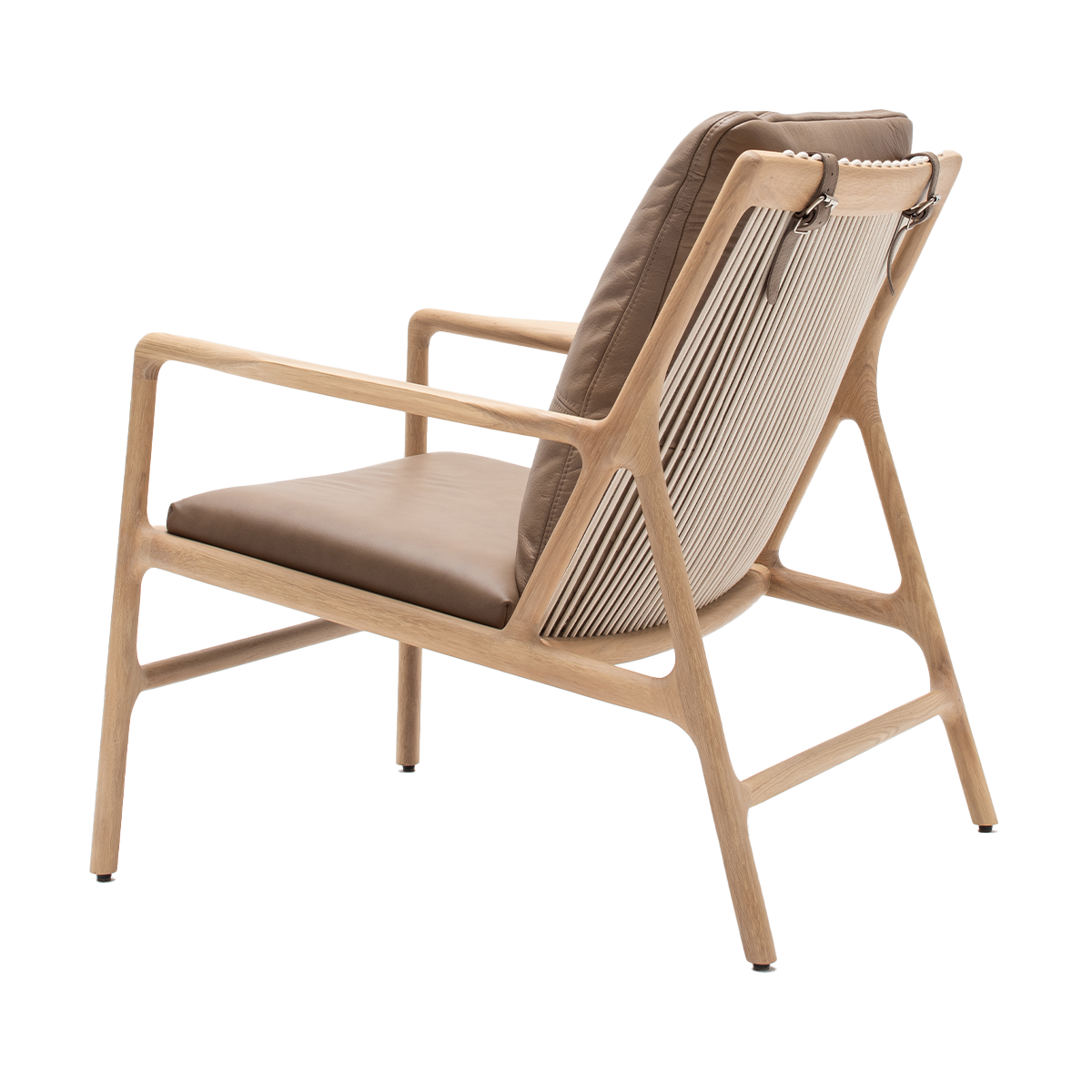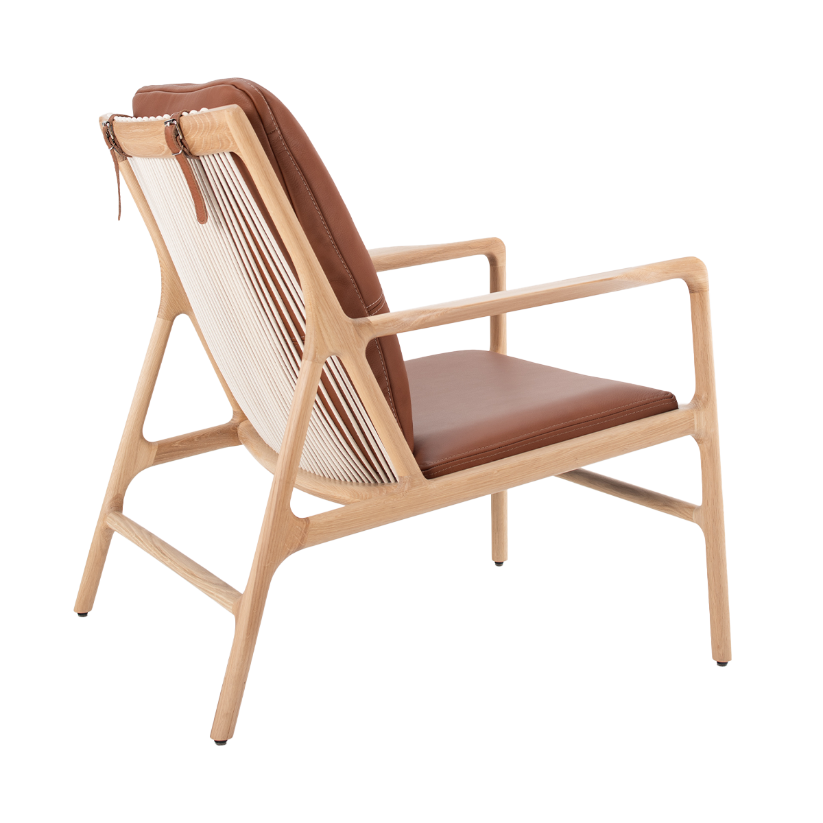 De Gazzda Dedo Easy Chair is de ultieme relaxstoel. De elegante lijnen van het massieve eikenhout in combinatie met het hoogwaardige Dakar leer maken de Dedo Easy Chair een ware eyecatcher in jouw interieur. Geïnspireerd door de vintage fauteuils van vroeger – passend bij de betekenis van ‘Dedo’ (grootvader in het Bosnisch) – brengt deze stoel een warme, tijdloze uitstraling in elke ruimte. De fauteuil heeft een stevig eikenhouten frame en een zithoogte van 40 cm, perfect voor ontspannen momenten. De rugleuning wordt ondersteund door strak geweven touw, wat niet alleen comfort biedt maar ook een prachtig designaccent is. De zit- en rugkussens zijn gevuld met duurzame materialen voor jarenlang zitplezier. Voordelen Handgemaakt van massief eikenhoutBekleding gemaakt
