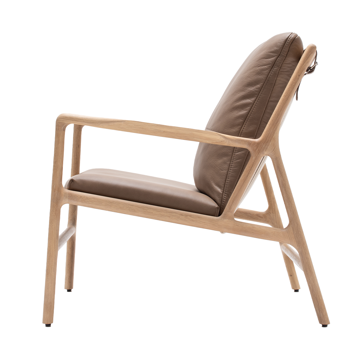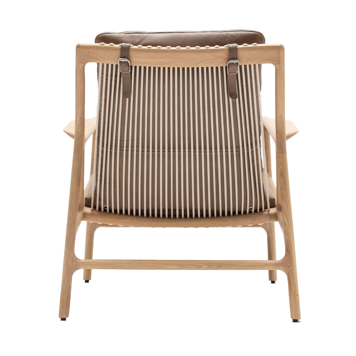 Otto eikenhouten fauteuil met bruin zitkussen naturel