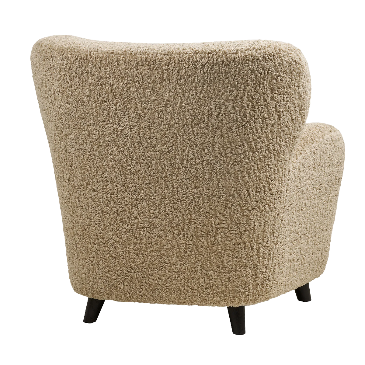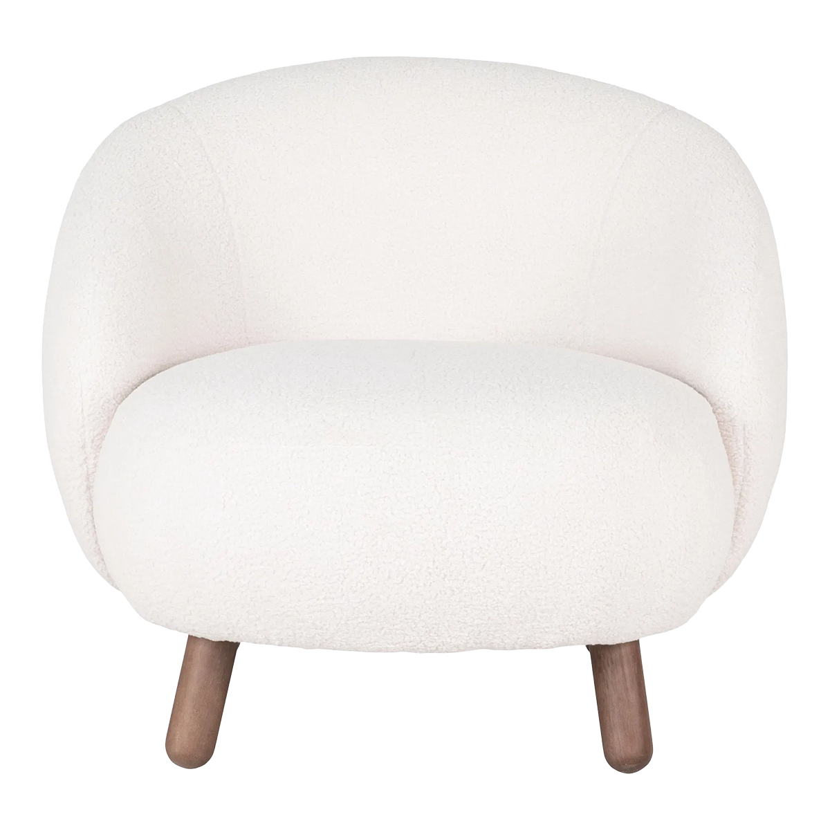 Mona fauteuil teddystof wit met walnoot kleur poten