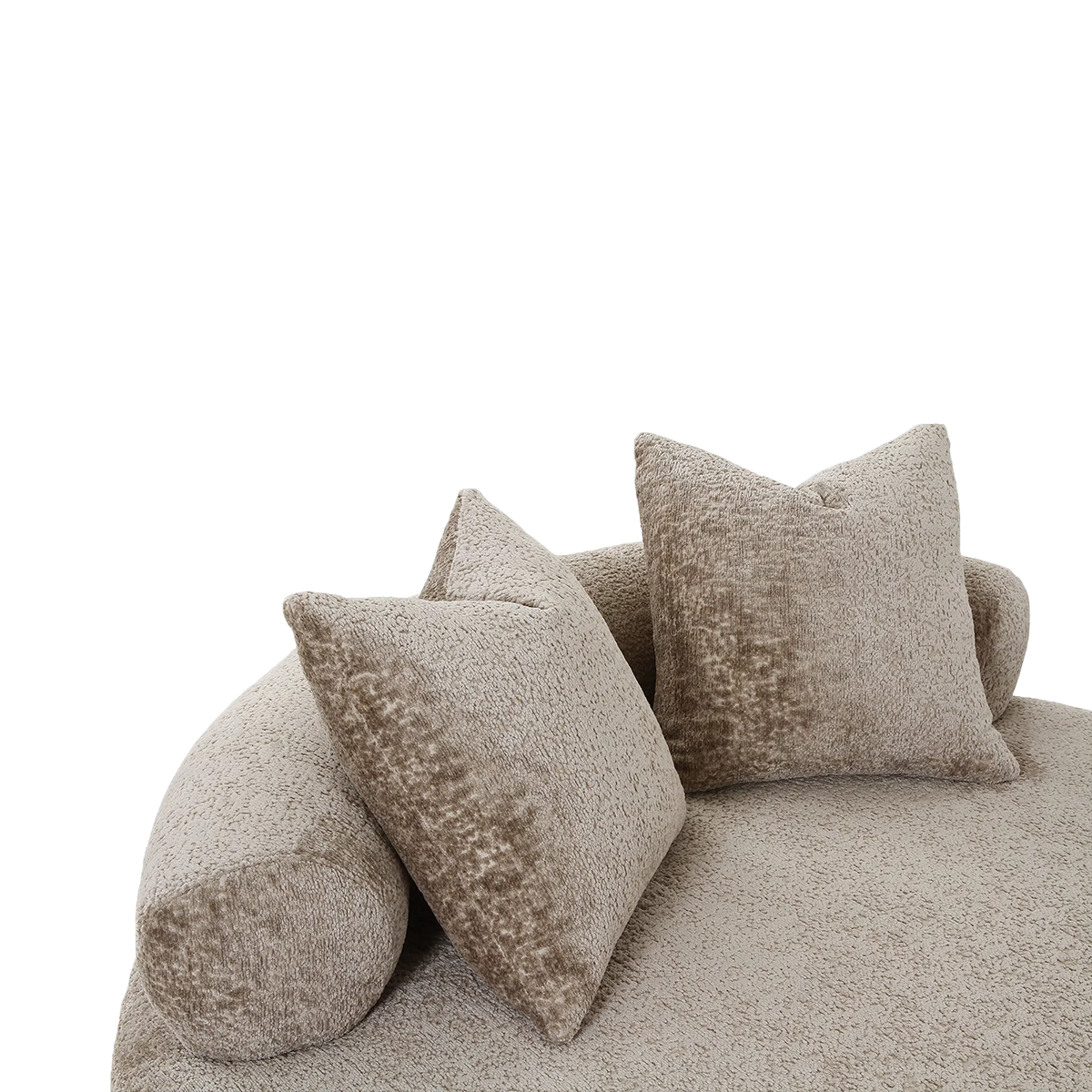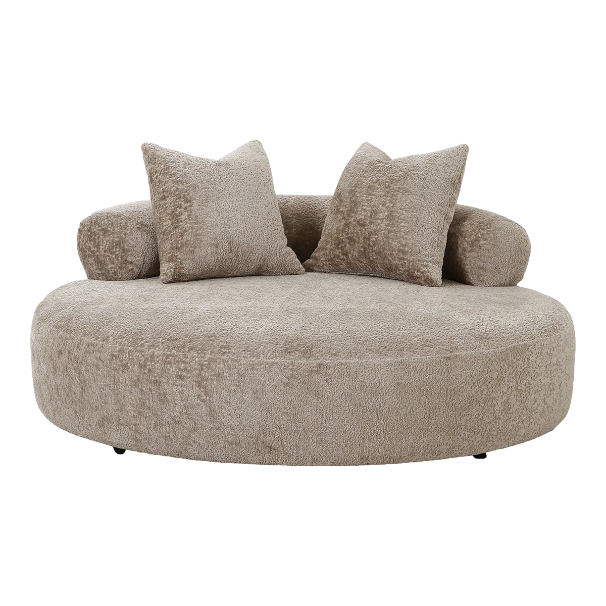 Met de ronde Annabel loveseat van Artichok is comfortabel televisie kijken gegarandeerd. Deze ronde lounge fauteuil is de ideale toevoeging aan jouw woonkamer als je graag languit ligt aan het eind van een lange dag. De chaise longue is ontworpen met een rugleuning, twee extra kussens en een zachte bekleding van chenille. De ronde vorm breekt de rechte lijnen in huis en zorgt ervoor dat dit meubel extra opvalt in de ruimte. Het meubel staat op kleine pootjes en lijkt daardoor boven de grond te zweven. Dankzij de taupe kleur is de Annabel loveseat gemakkelijk te combineren met verschillende woonstijlen, van industrieel tot Scandinavisch en Japandi. Met een afmeting van 160 bij 160 centimeter heb je voldoende ruimte om samen te genieten van dit comfortabele daybed, maar ook voor solo-gebruik is hij ideaal; kruip weg onder een dekentje met een goed boek of geniet van een spannende film in alle comfort. Gebruik de Annabel als loveseat, fauteuil, daybed of