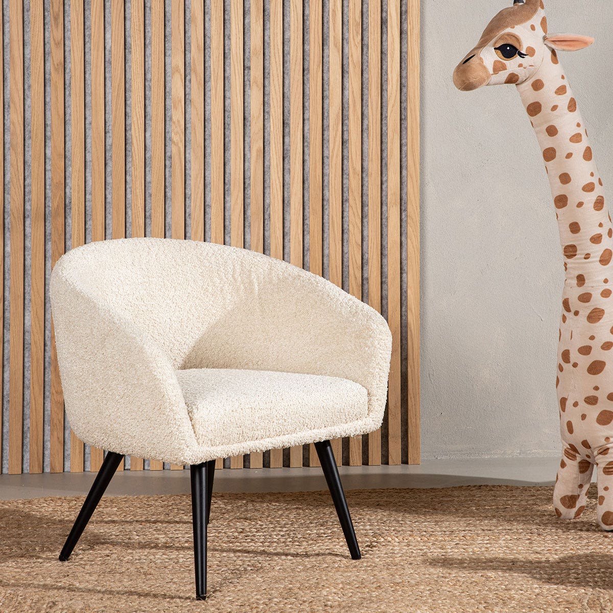 Annika kinderfauteuil teddy gebroken wit – met zwarte poten