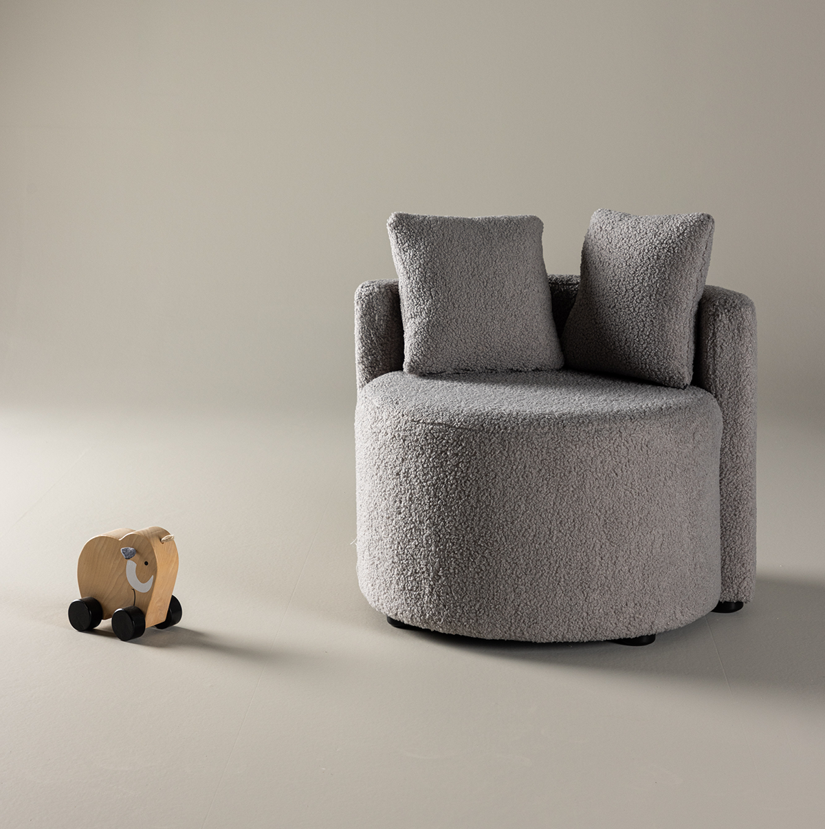 Elina ronde kinderfauteuil teddy grijs – met twee kussens