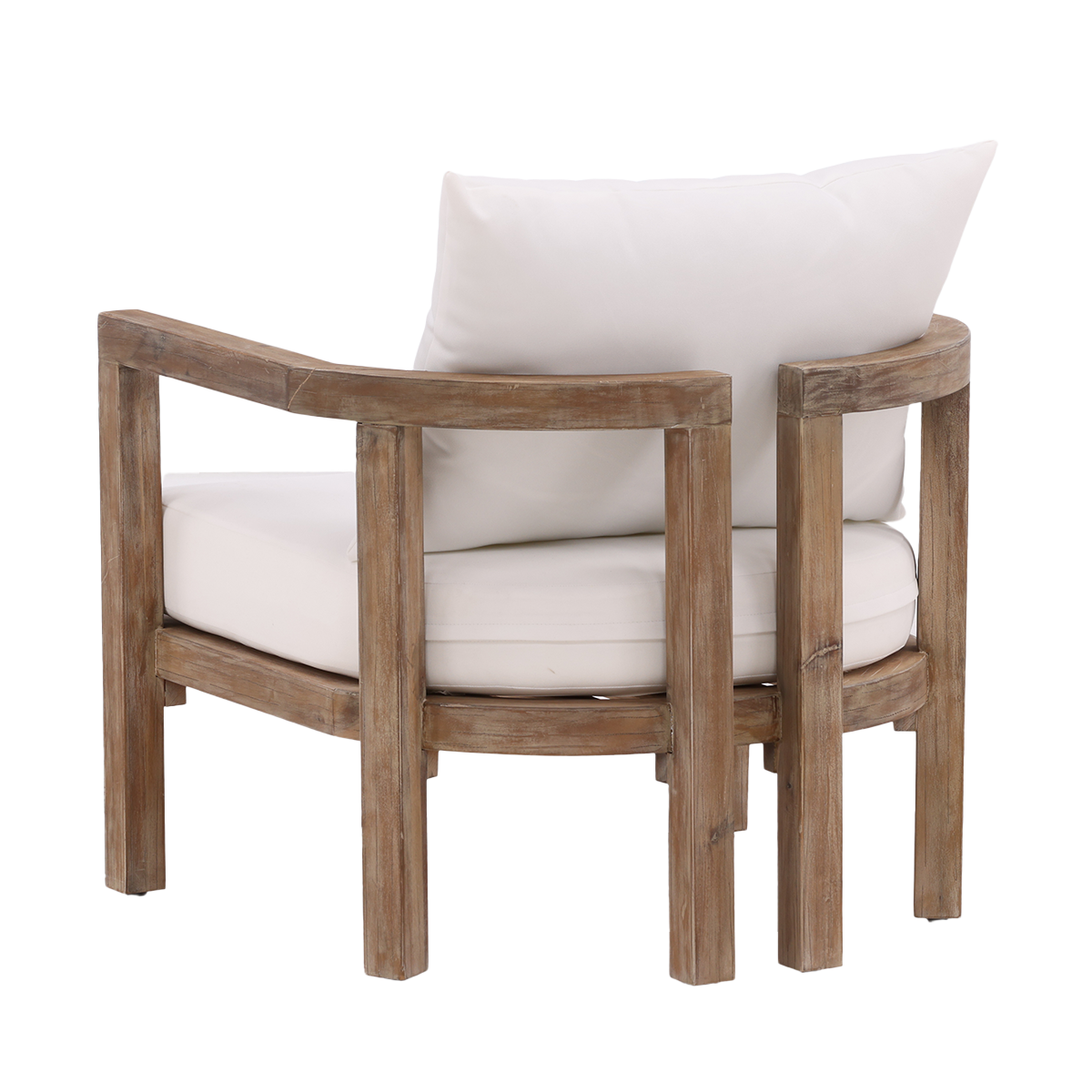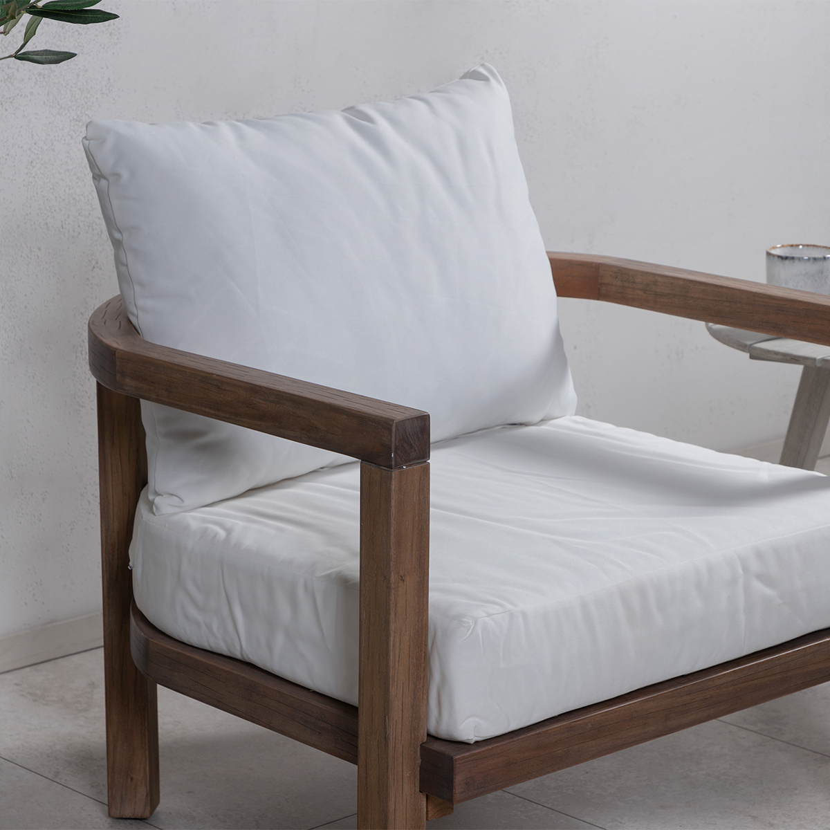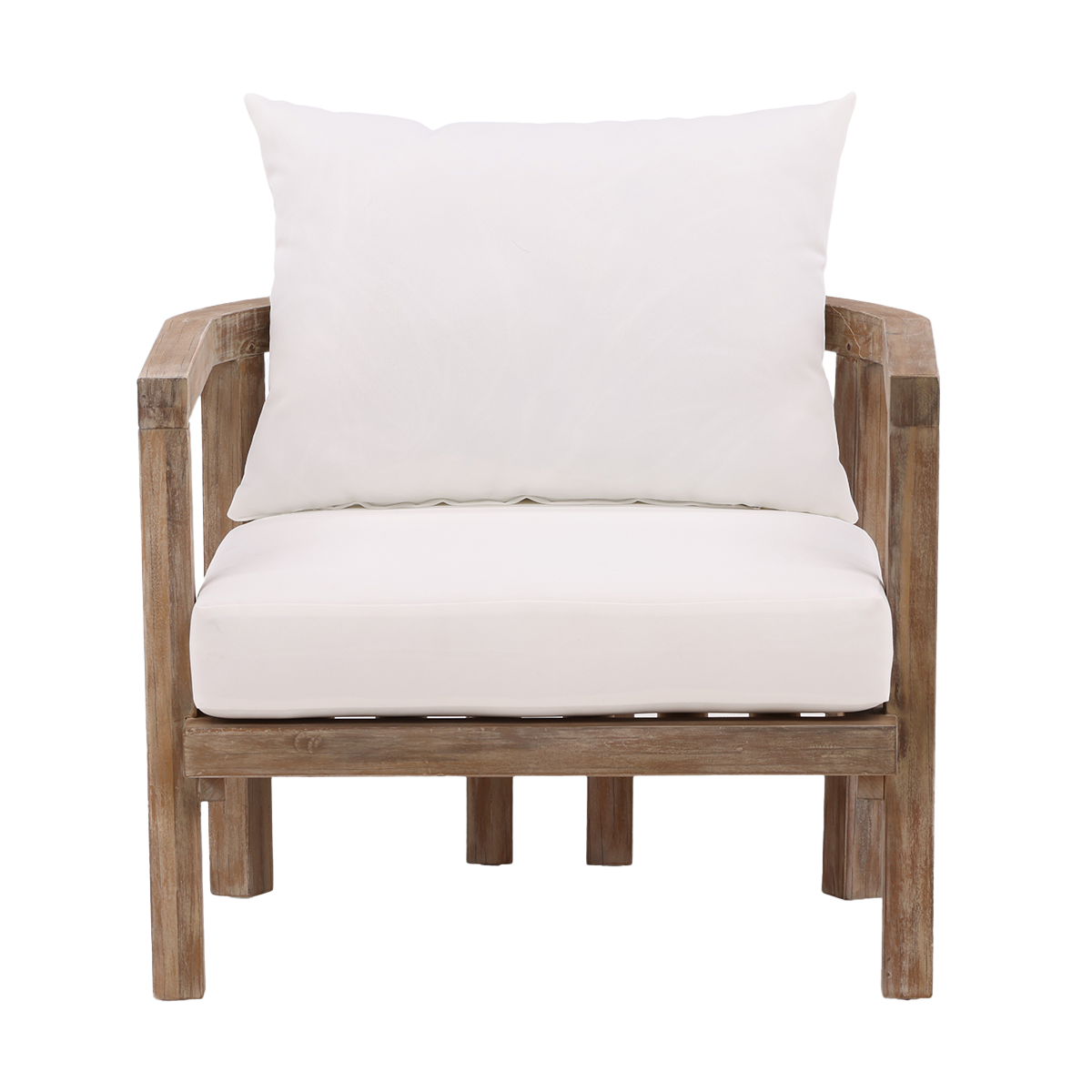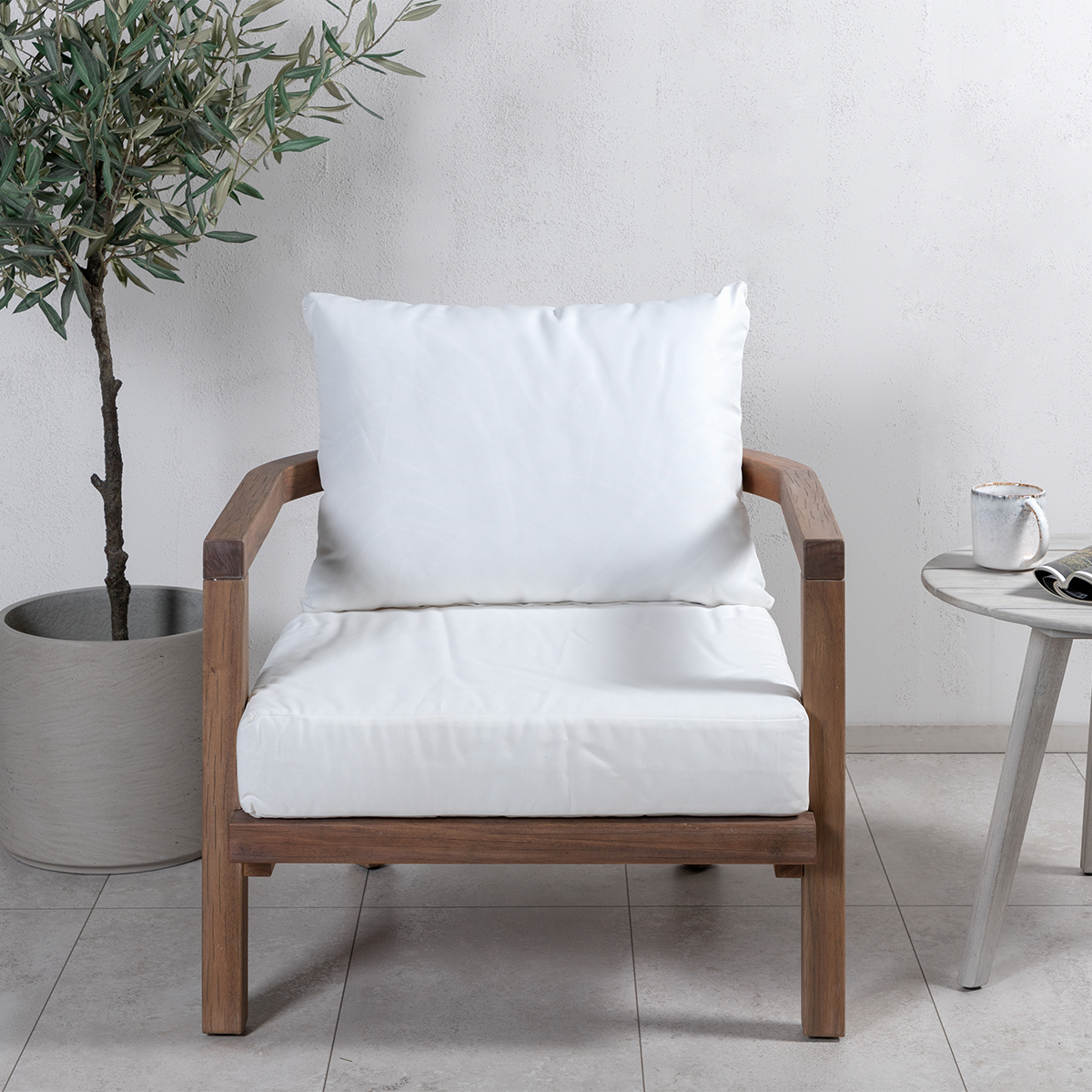 Elio acacia houten tuin lounge fauteuil naturel met witte zitkussens