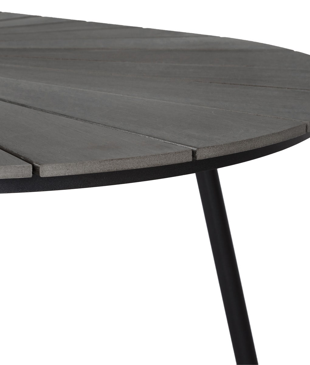 De Aaron tuintafel van Nest outdoor is de perfecte tafel als je het gezellig wil maken in de tuin. Het frame en de poten van de tuintafel zijn gemaakt van aluminium met een zwarte poedercoating. Het tafelblad is gemaakt van polywood latjes met een houtlook. Hierdoor heeft de tuintafel een natuurlijke uitstraling maar is hij gemakkelijk te onderhouden en gaat hij lang mee. Let op: laat glazen niet te lang in de zon staan op een polywood tafelblad. Hierdoor kan een vergrootglaseffect optreden waardoor er smeltplekken ontstaan. Ook hete voorwerpen zoals pannen kunnen niet direct op het tafelblad worden geplaatst. Voordelen Aluminium tuintafel met ronde vorm Kunststof tafelblad met houtlook Lange levensduur en onderhoudsvriendelijk Pas op met hete voorwerpen en glazen op het tafelbladDe hoogte tot de onderkant van het tafelblad is 70 cm Tip: de Aaron tuintafel is in verschillende afmetingen