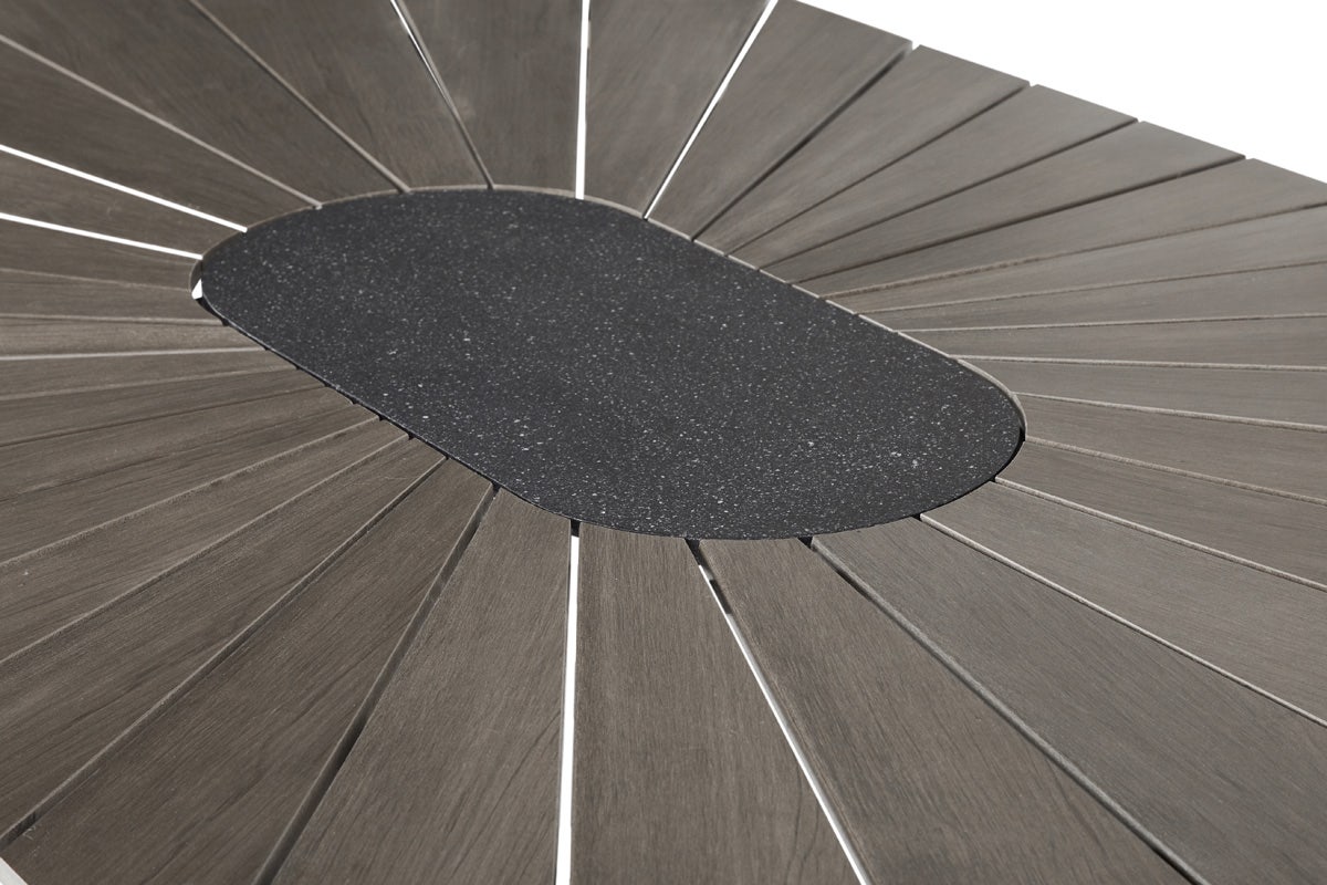 Lasse aluminium tuintafel zwart houten tafelblad 205 x 90 cm