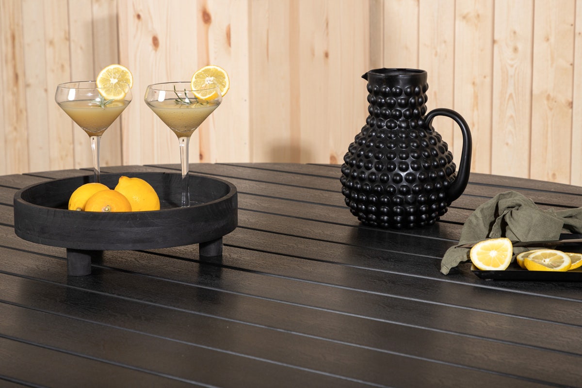 Heerlijk buiten dineren doe je aan de Jesper tuintafel van Artichok. Het frame en de poten van deze tafel zijn gemaakt van aluminium en het tafelblad is gemaakt van polywood. Dit is sterk kunststof materiaal dat eruitziet als hout. Deze tafel leent zich uitstekend voor gezellige diners in de tuin. Met een lengte van 220 cm is er ruimte voor zes tot acht personen. Bovendien is de tafel gemaakt van lichtgewicht materialen, waardoor je deze gemakkelijk verplaatst om meer ruimte te creëren. Let op: laat glazen niet te lang in de zon staan op een polywood tafel. Hierdoor kan een vergrootglaseffect optreden waardoor er smeltplekken ontstaan op het tafelblad. Ook hete voorwerpen zoals pannen kunnen niet direct op het tafelblad worden geplaatst. Voordelen Grote tuintafel gemaakt van aluminium en polywood Oogt chic door de zwarte kleur De tuintafel is speciaal geschikt voor buitengebruik Let op: wees voorzichtig met warme