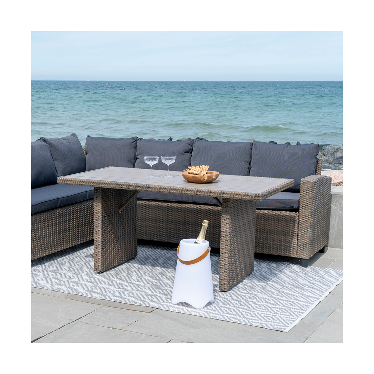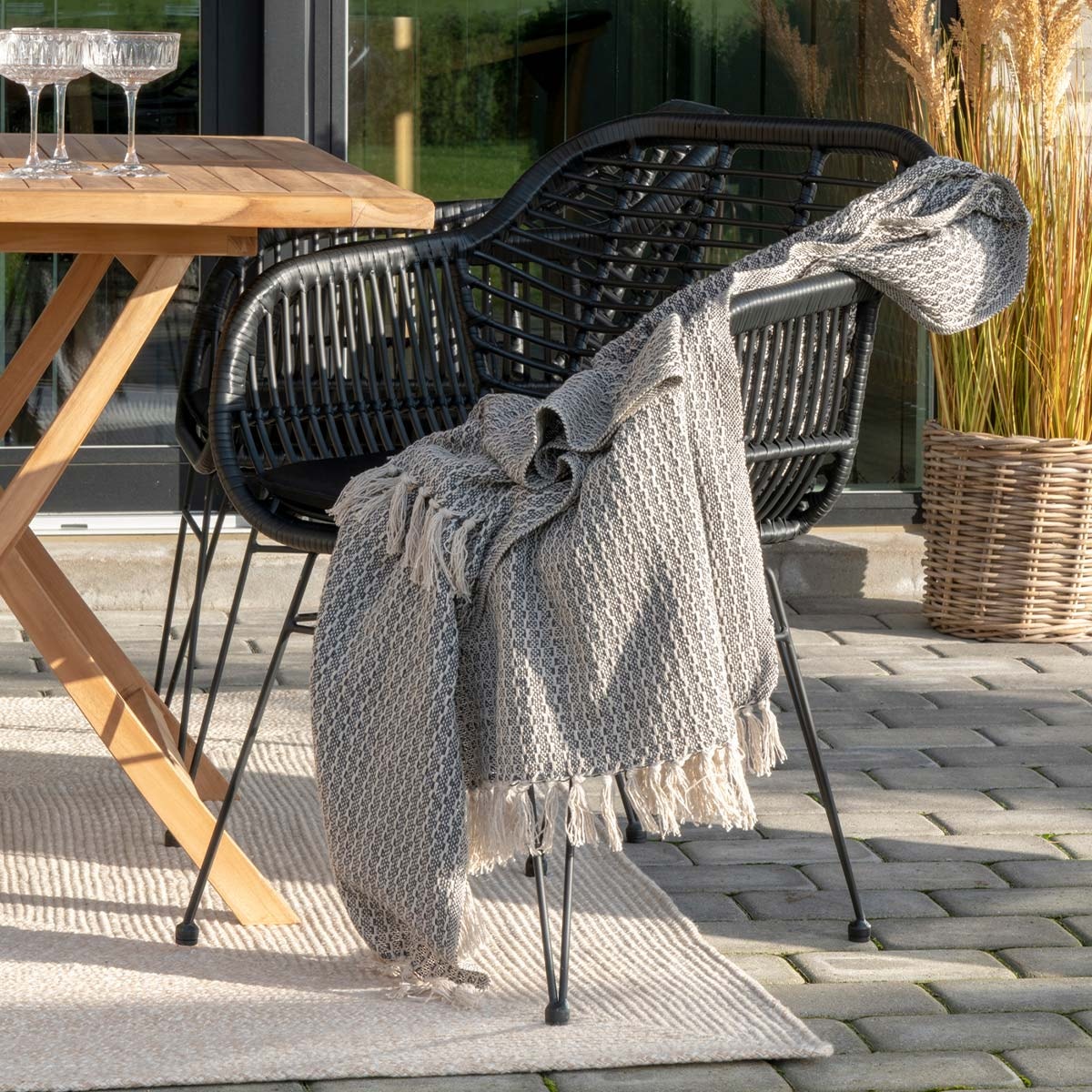 Het Nadine buitenkleed van Lisomme is ideaal om buiten het knusse woonkamergevoel te creëren. De afmeting van dit vloerkleed is 160 cm lang bij 230 cm breed. Het Nadine vloerkleed is weerbestendig en kan het hele jaar door gewoon buiten blijven liggen. Dit komt omdat het kleed is gemaakt van polypropyleen: een verrassend zacht en waterbestendig kunststof materiaal dat tegen de seizoenen is opgewassen. Dit materiaal is bovendien gemakkelijk schoon te maken en vergt weinig onderhoud. Het Nadine vloerkleed is dus ook een perfecte keuze als je op zoek bent naar een trendy maar praktisch vloerkleed voor binnen! Voordelen Door het kunststof materiaal geschikt voor binnen en buiten Door het kunststof materiaal is het kleed gemakkelijk schoon te maken Modern en trendy design