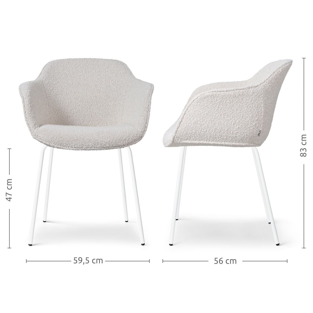 Nora Mare eetkamerstoel bouclé beige wit onderstel