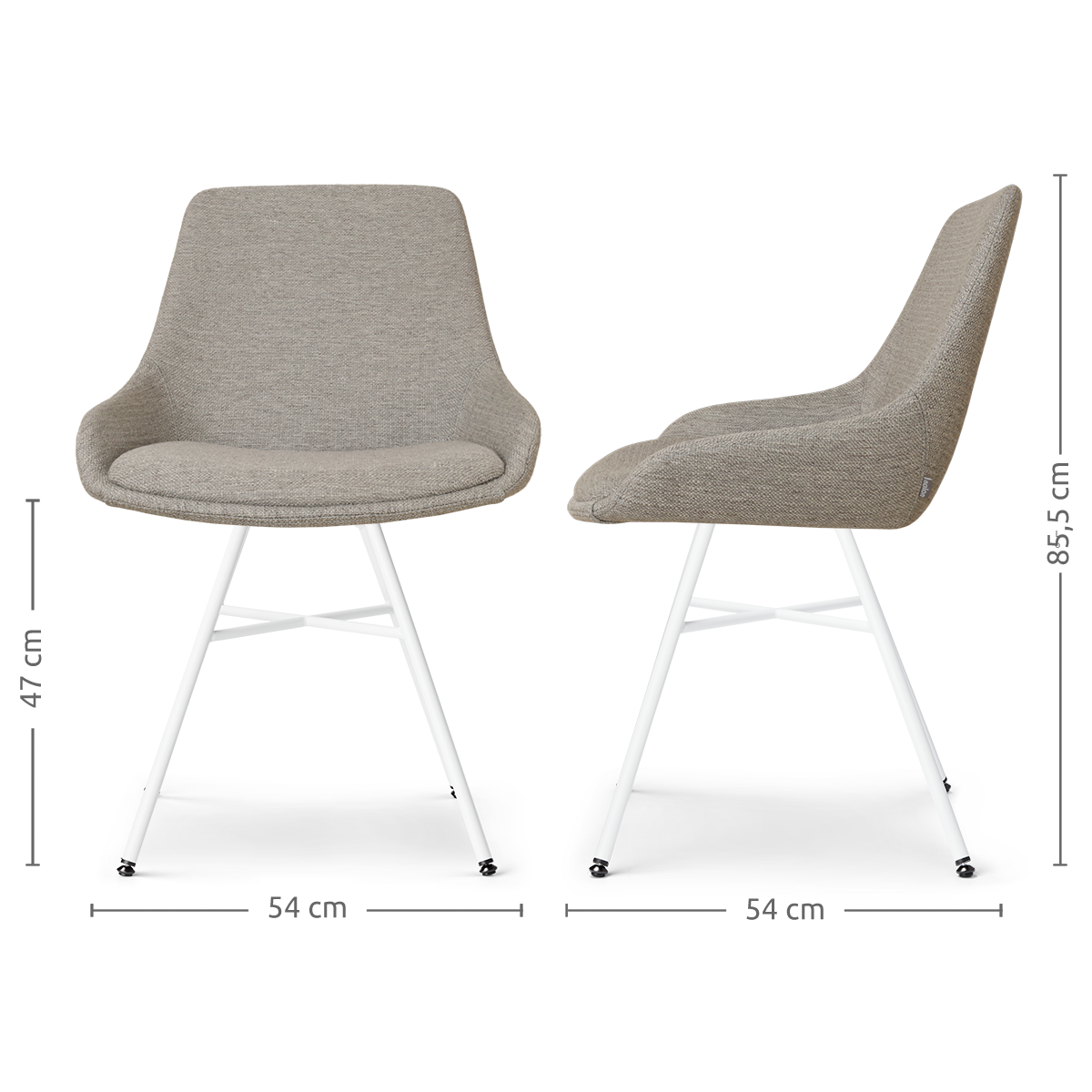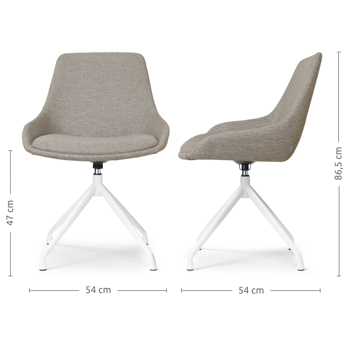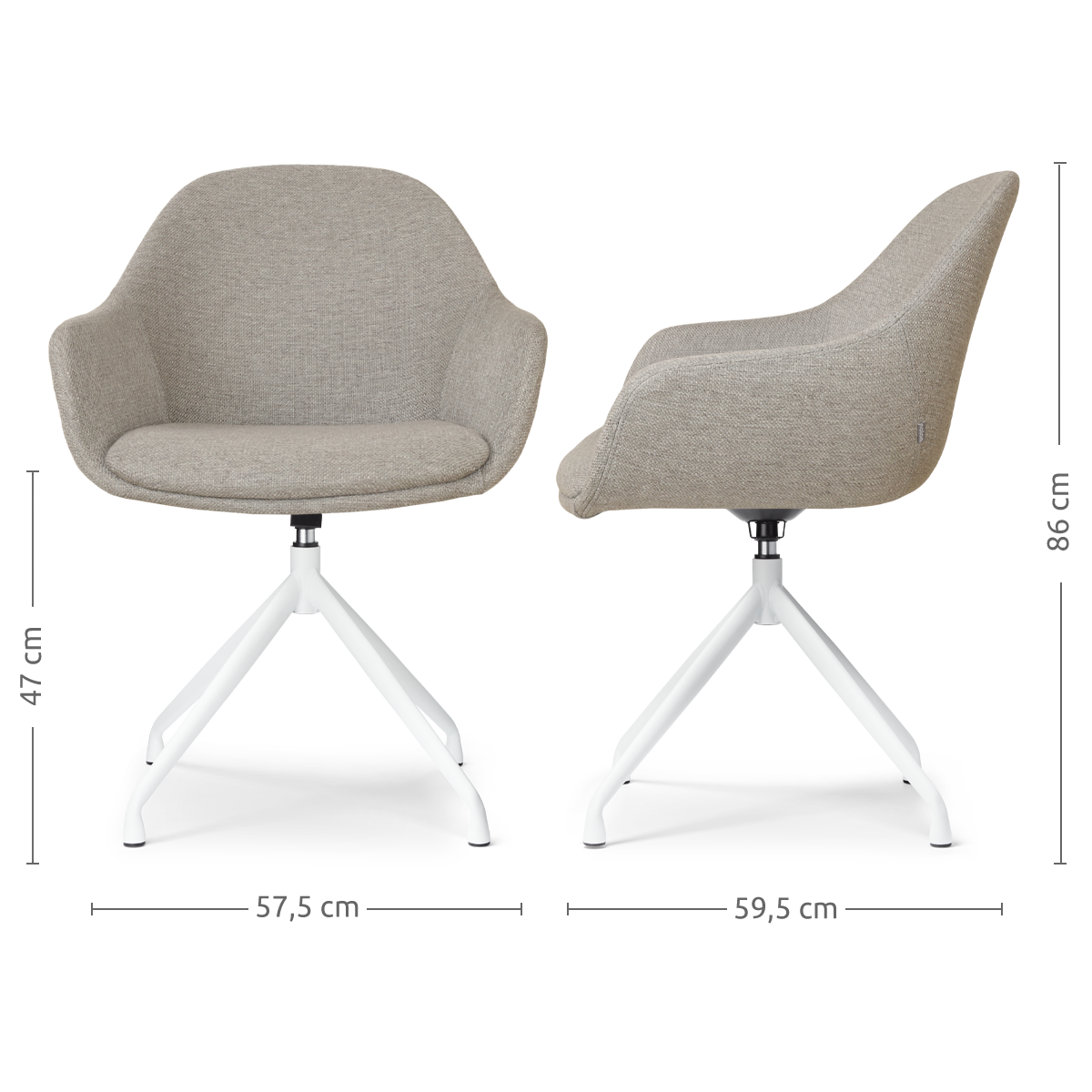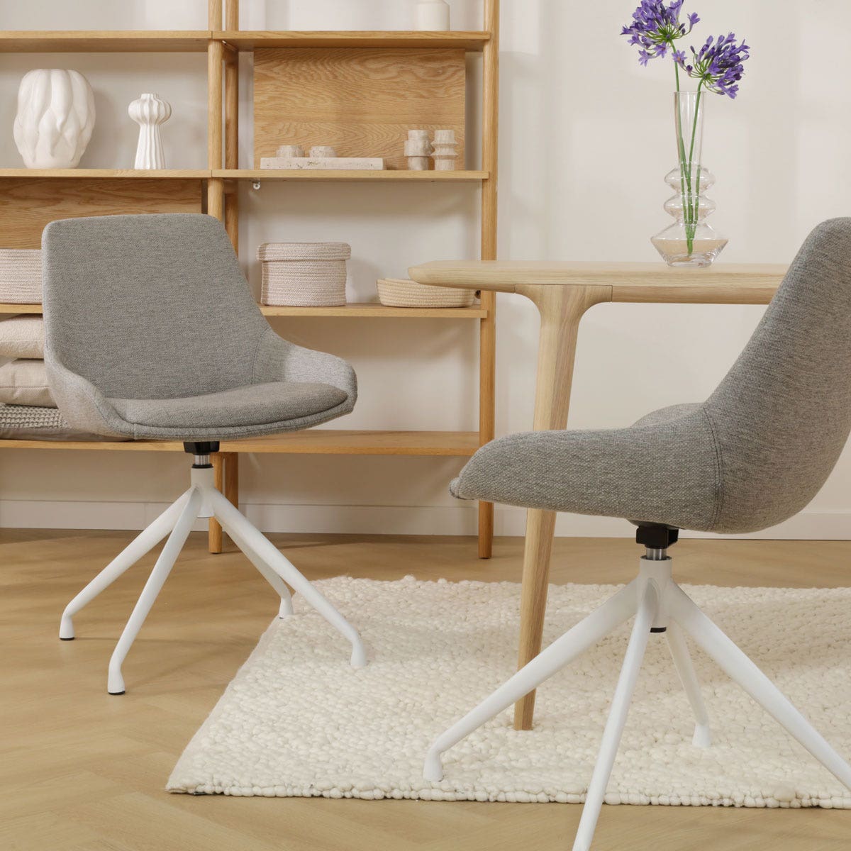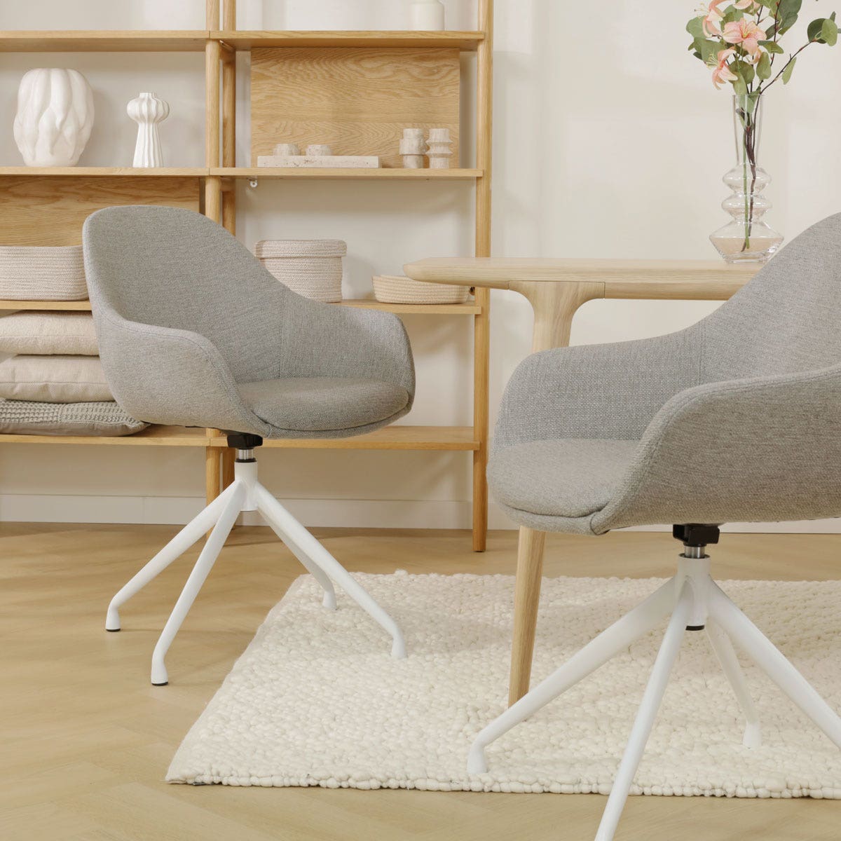 Nola Mae draaibare eetkamerstoel warm grijs wit onderstel