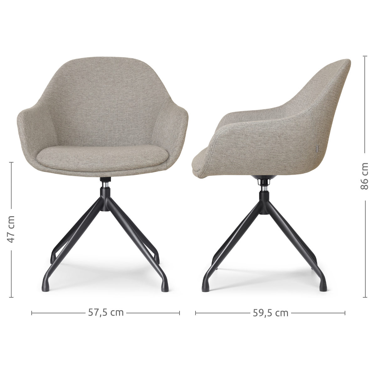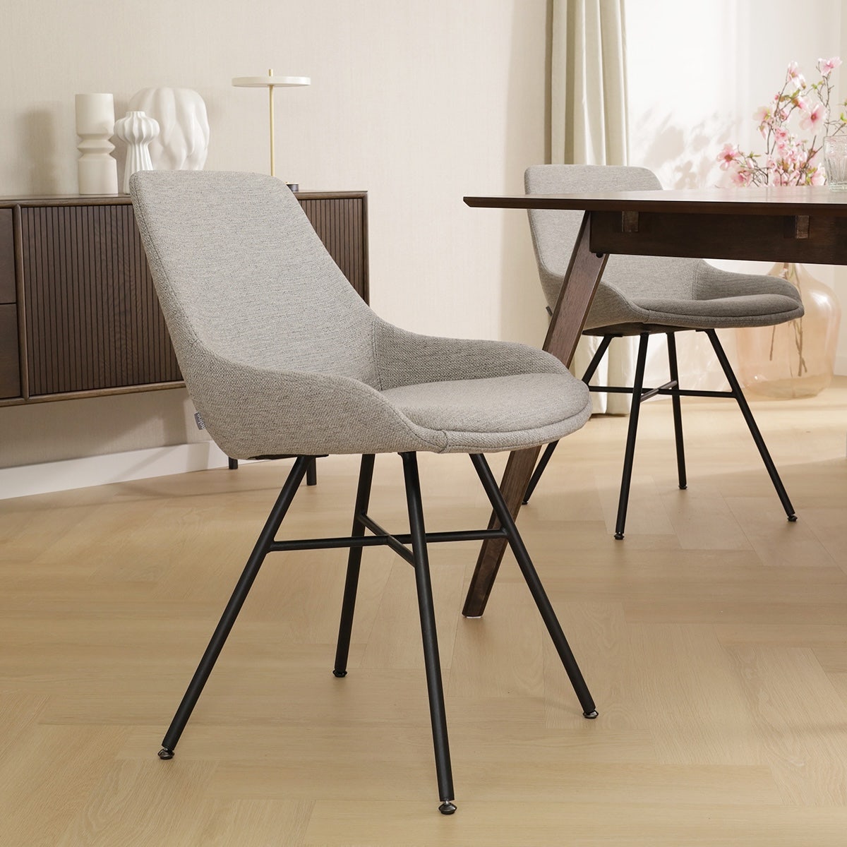 Nola Isa draaibare eetkamerstoel warm grijs zwart onderstel