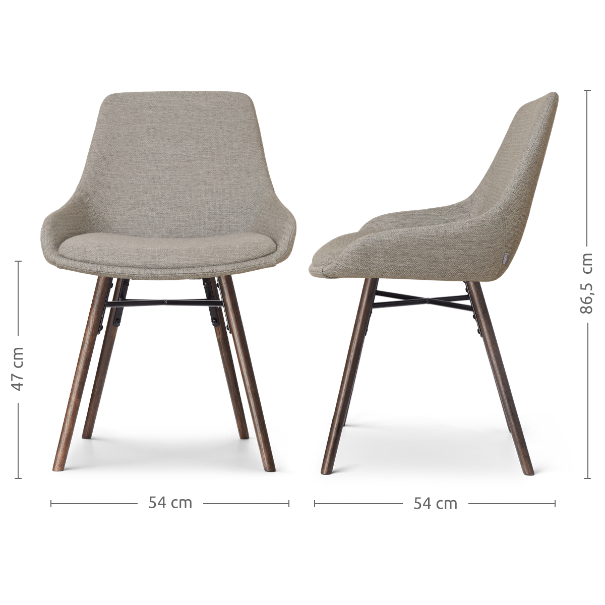 Breng een warme en functionele sfeer naar uw eetkamer met de Nena-Isa eetkamerstoel in warm grijs, gecombineerd met een walnoot houten onderstel.Deze stoel van het merk Nolon is gemaakt van hoogwaardige materialen en biedt een hoog zitcomfort dankzij de ergonomische vorm van de zitting. Zonder armleuningen biedt de stoel voldoende bewegingsruimte en past hij gemakkelijk onder elke tafel, waardoor hij minder ruimte inneemt. De stevige houten poten en metalen kruisverbinding zorgen voor extra stabiliteit. Met een zithoogte van 47 cm en zitdiepte van 40 cm, biedt deze stoel een comfortabele zitervaring. De totale hoogte van de stoel is 86,5 cm en hij is eenvoudig in elkaar te zetten. De combinatie van de walnoot houten poten en de warme grijze bekleding zorgt voor een Scandinavische en Japandi uitstraling, perfect voor een stijlvolle eetkamer. De stoel is volledig gestoffeerd voor een luxe uitstraling en is ook verkrijgbaar met andere kleuren en onderstellen, waardoor