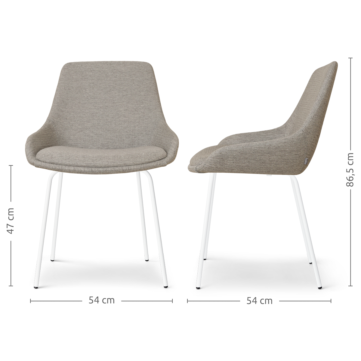 Verrijk jouw eetkamer met de moderne Nora-Isa eetkamerstoel in warm grijs van het merk Nolon.De stoel combineert Scandinavisch en minimalistisch design, met een strak wit metalen onderstel dat stabiliteit biedt. De Nora-Isa is ontworpen zonder armleuningen, wat ruimte bespaart en ervoor zorgt dat de stoel onder elke tafel past. De gestoffeerde zitting, met een stevige houten binnenwerk, biedt comfort en bevordert een actieve zithouding. Met een zithoogte van 47 cm en een zitdiepte van 40 cm, is de stoel zowel praktisch als stijlvol. De stoel is eenvoudig in elkaar te zetten en de warme grijze bekleding voegt een tijdloze elegantie toe aan iedere eetkamer. Het onderstel is naast wit ook verkrijgbaar in andere kleuren, waardoor je eenvoudig kunt mixen en matchen met andere elementen in je interieur. Onderhoud en advies Aangeraden wordt om de stoffen zitting voor het eerste gebruik te impregneren voor een langere levensduur. Gebruik