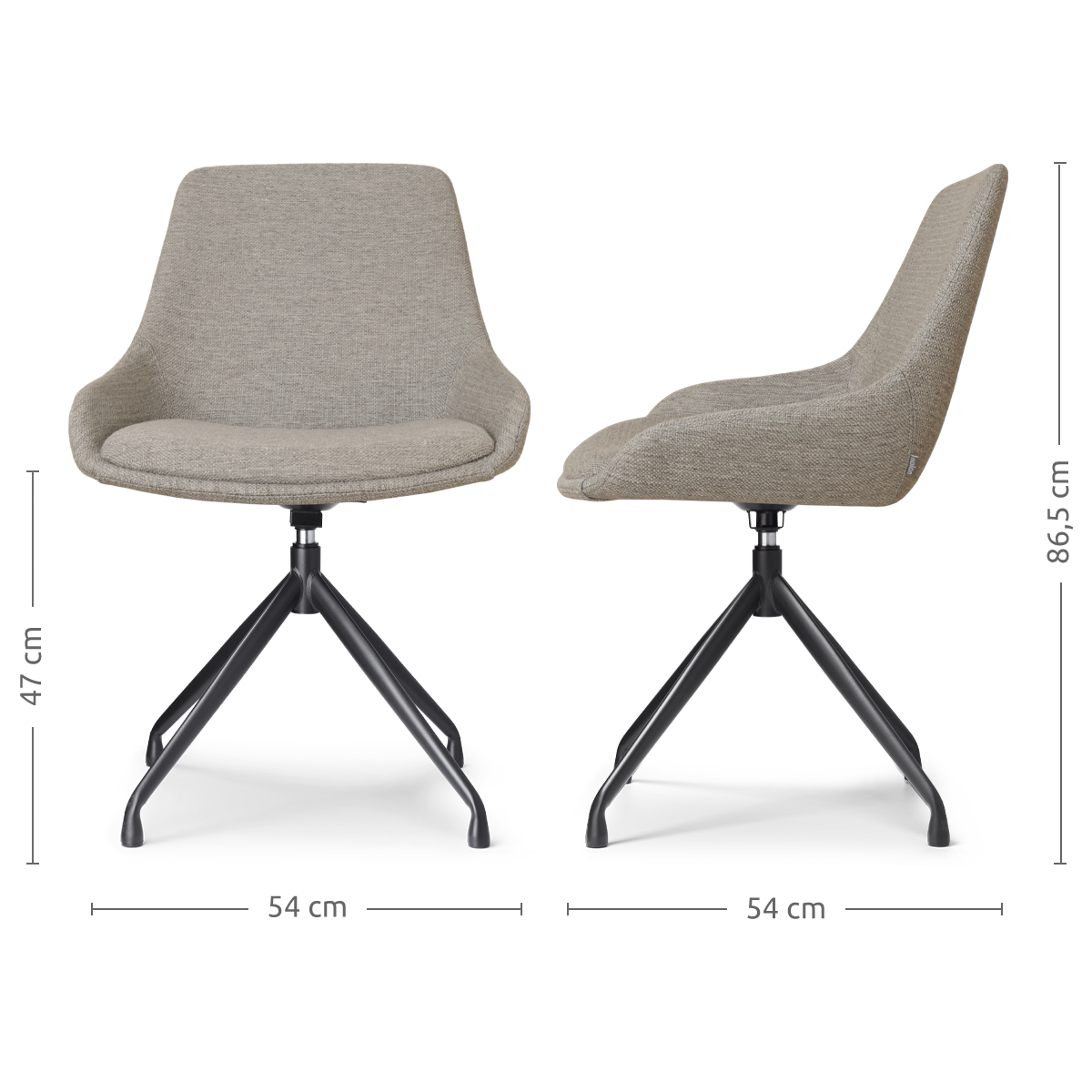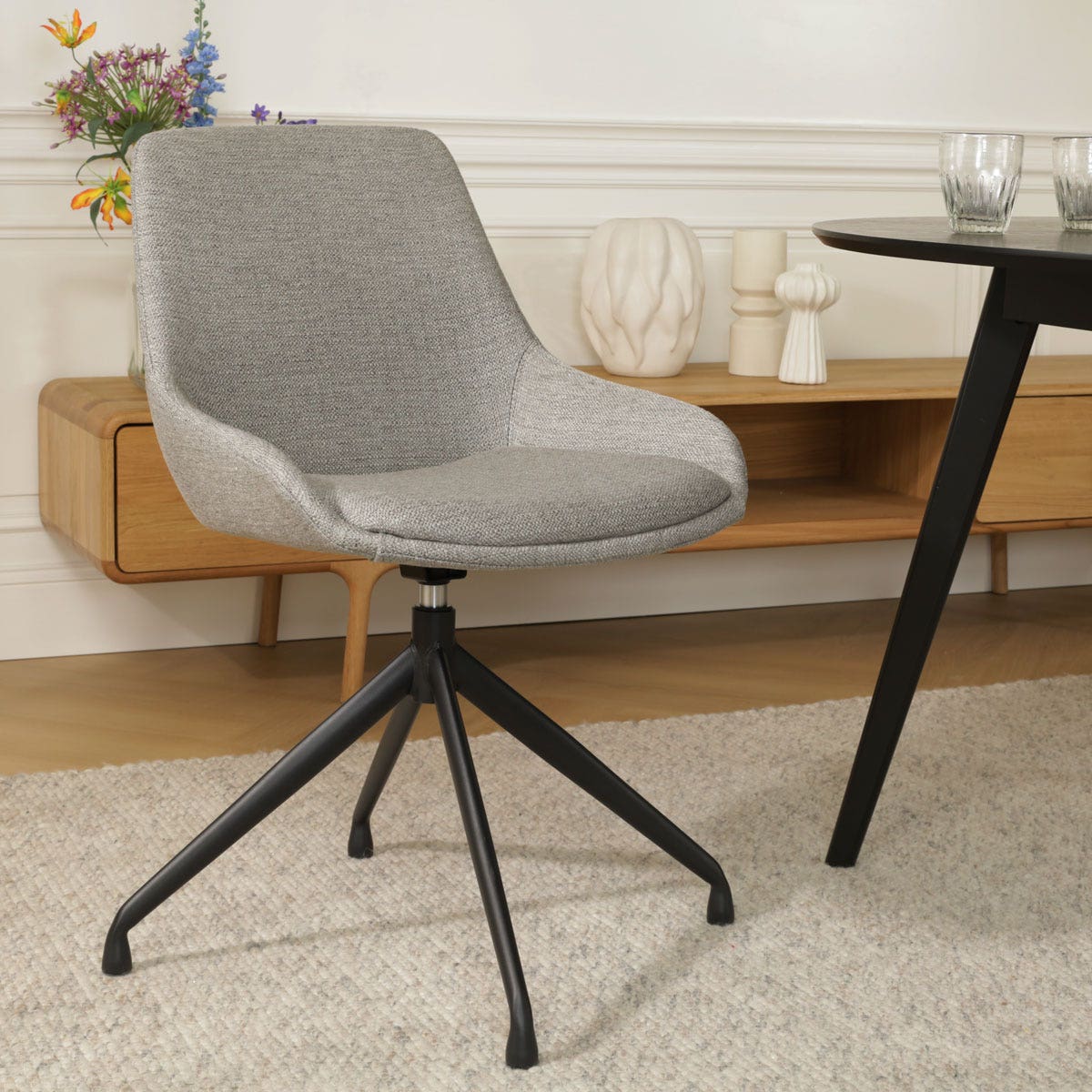 Nola Mae draaibare eetkamerstoel warm grijs zwart onderstel