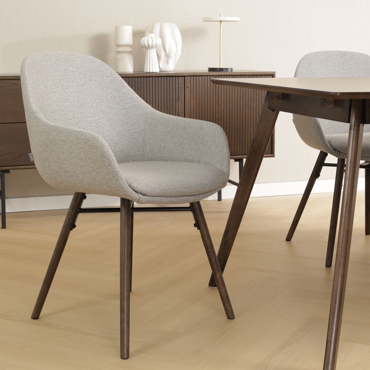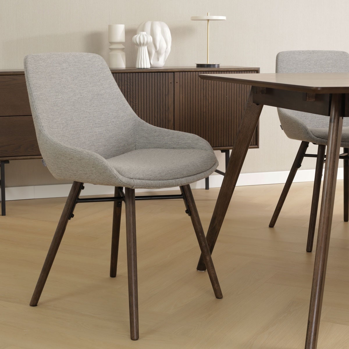 Nena Isa eetkamerstoel warm grijs walnoot houten onderstel