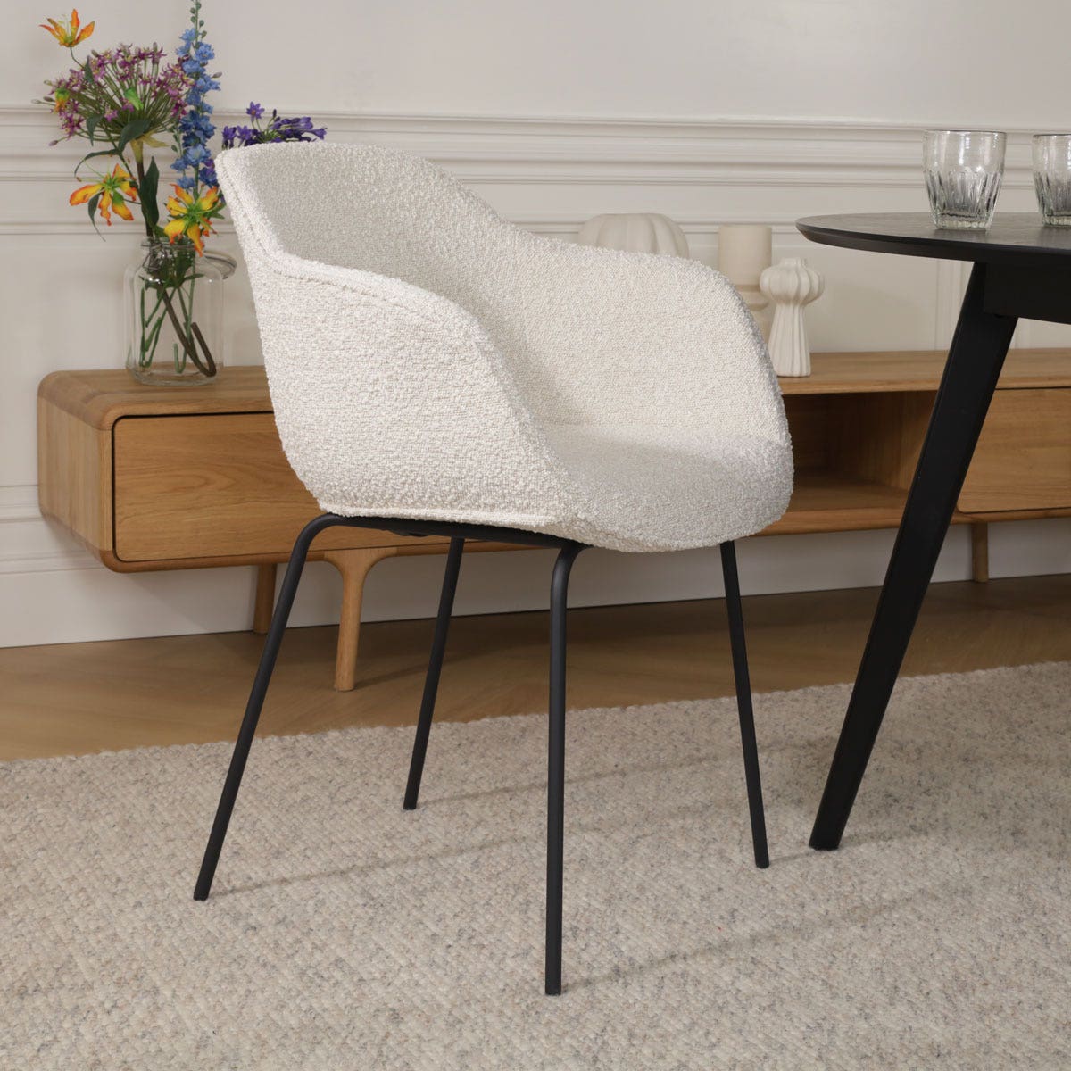 Nora Mare eetkamerstoel bouclé beige zwart onderstel