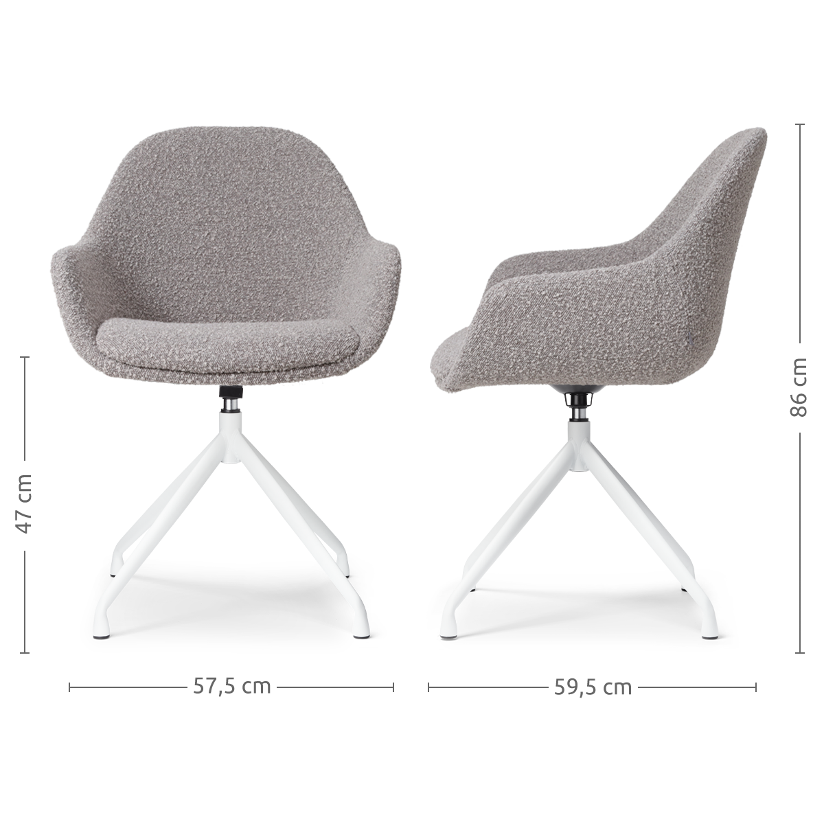 Nola Mae draaibare eetkamerstoel bouclé taupe wit onderstel set van 2