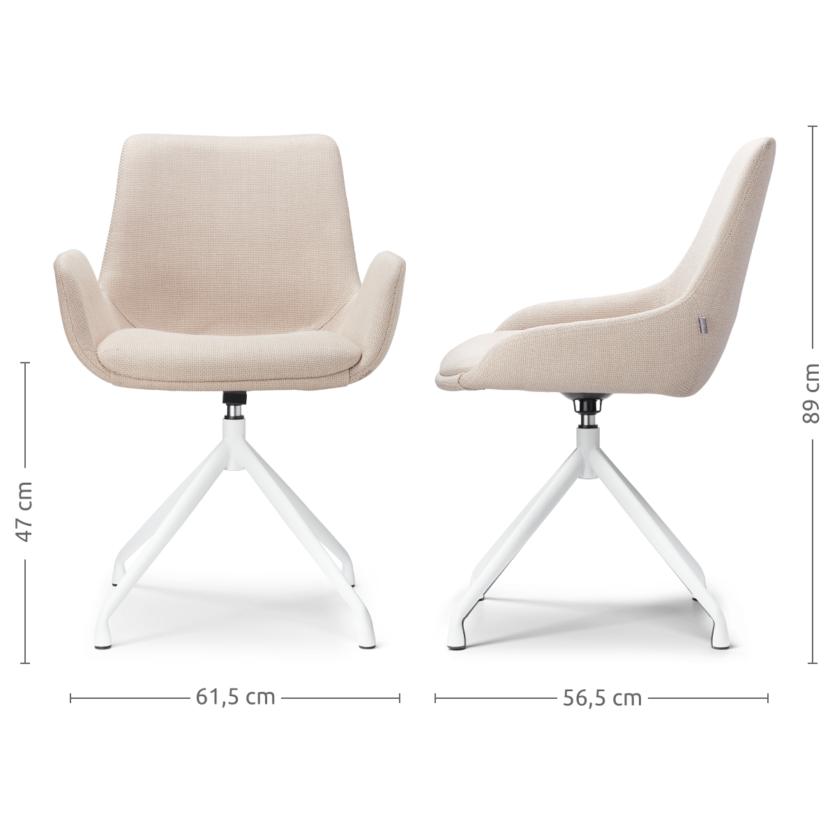 Nola Eef draaibare eetkamerstoel beige wit onderstel set van 2
