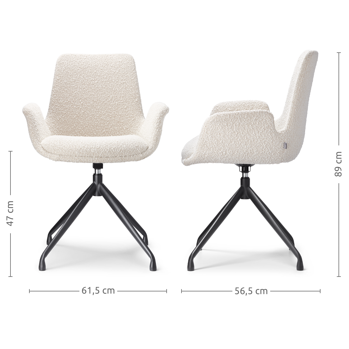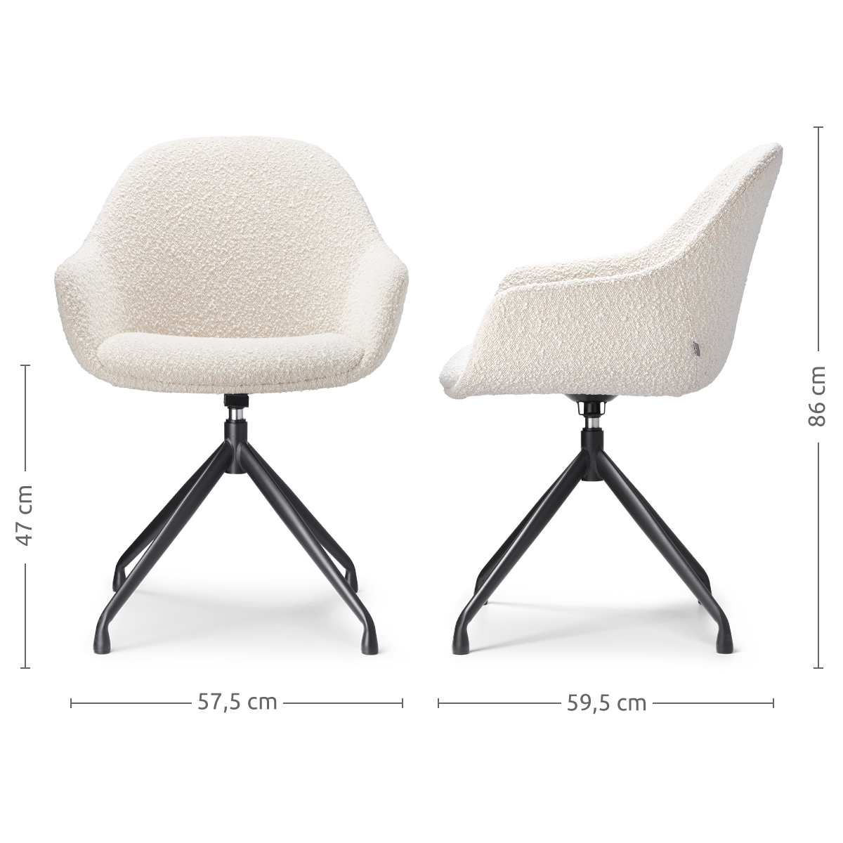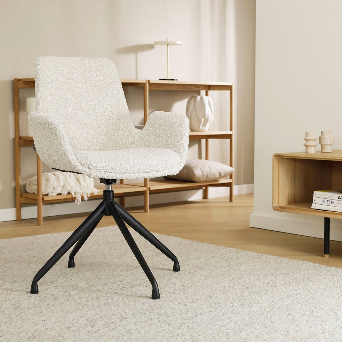 Nola Eef draaibare eetkamerstoel bouclé beige zwart onderstel set van 2