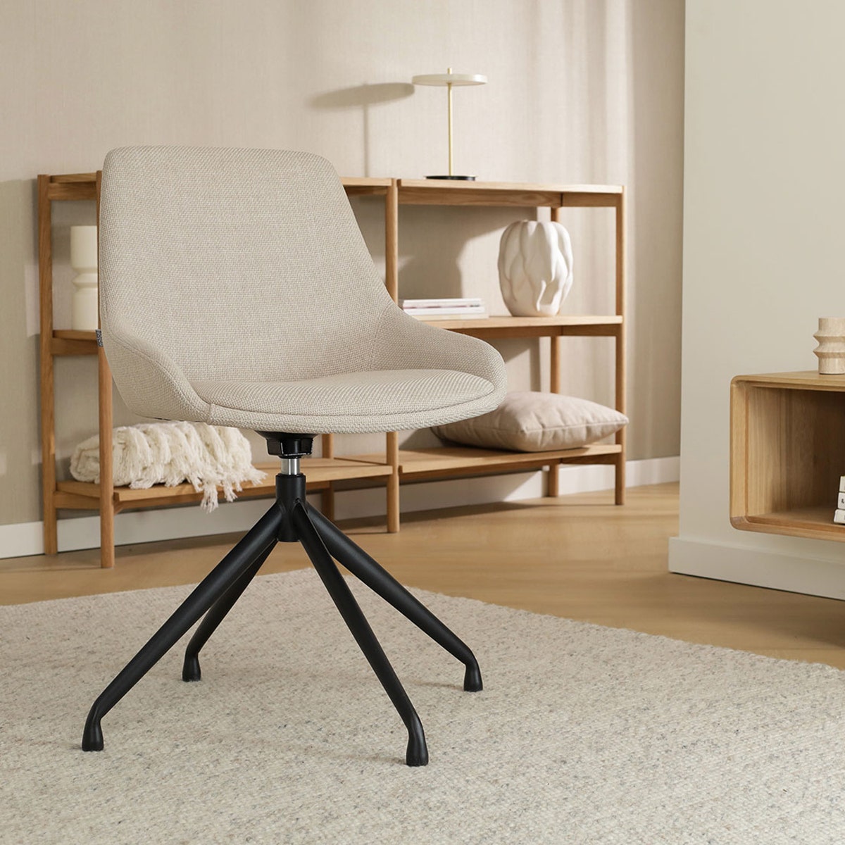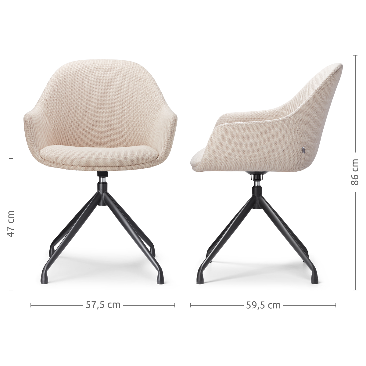 Nola Eef draaibare eetkamerstoel beige zwart onderstel set van 2