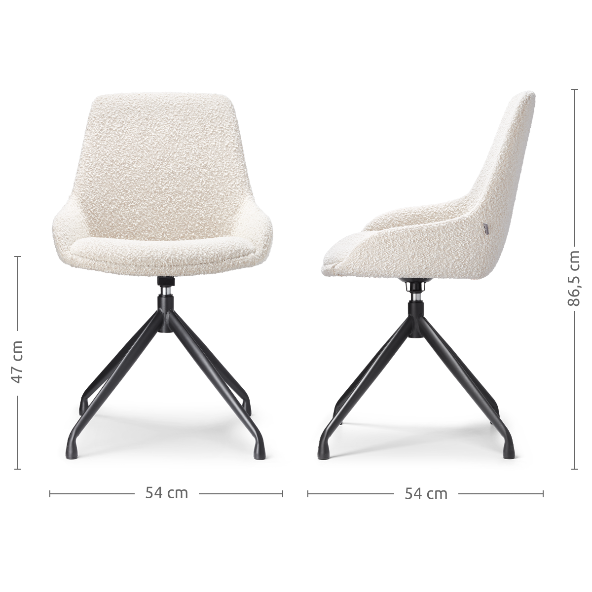Nola Eef draaibare eetkamerstoel bouclé beige wit onderstel set van 2