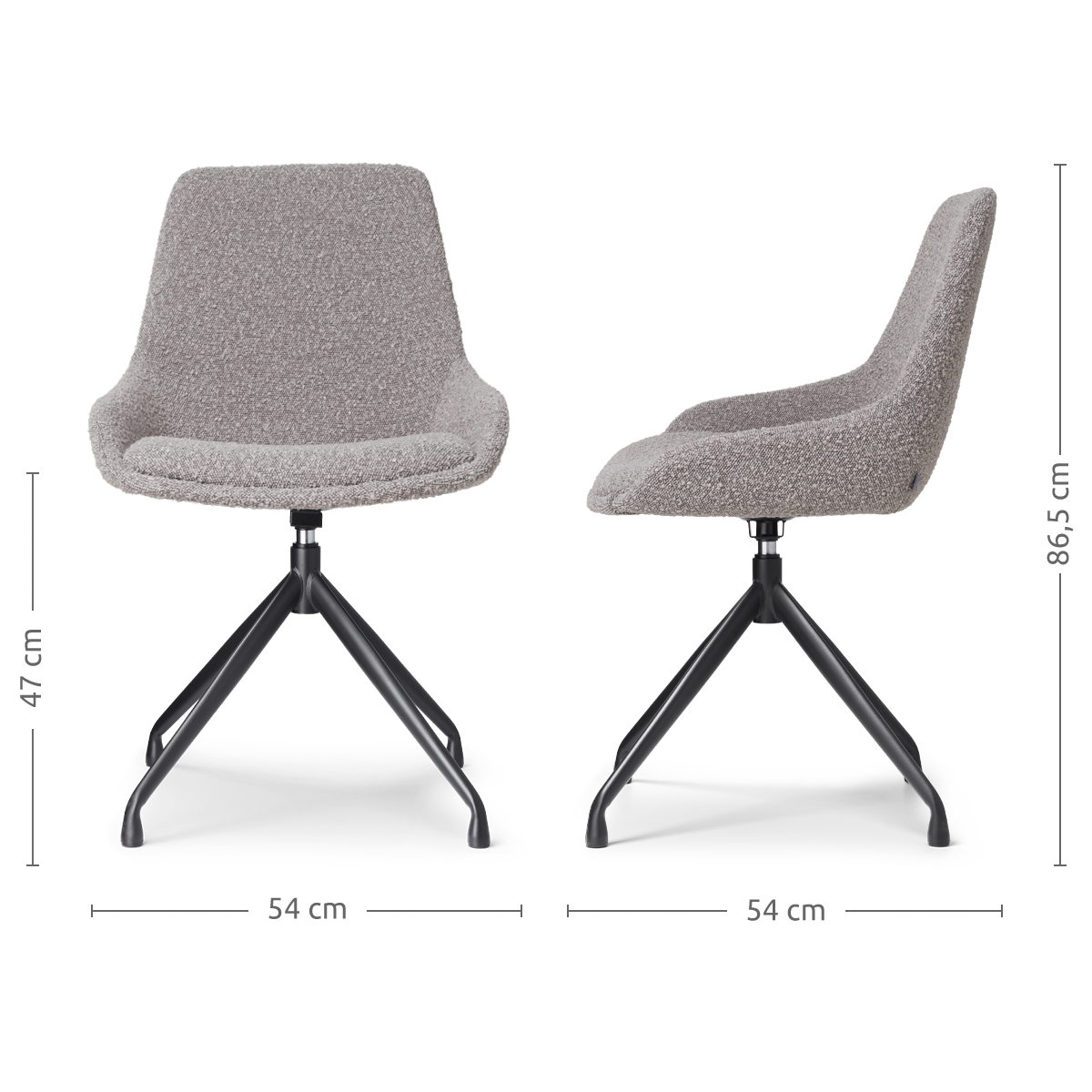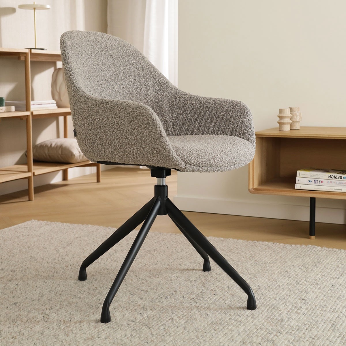 Nola Mae draaibare eetkamerstoel bouclé taupe zwart onderstel set van 2