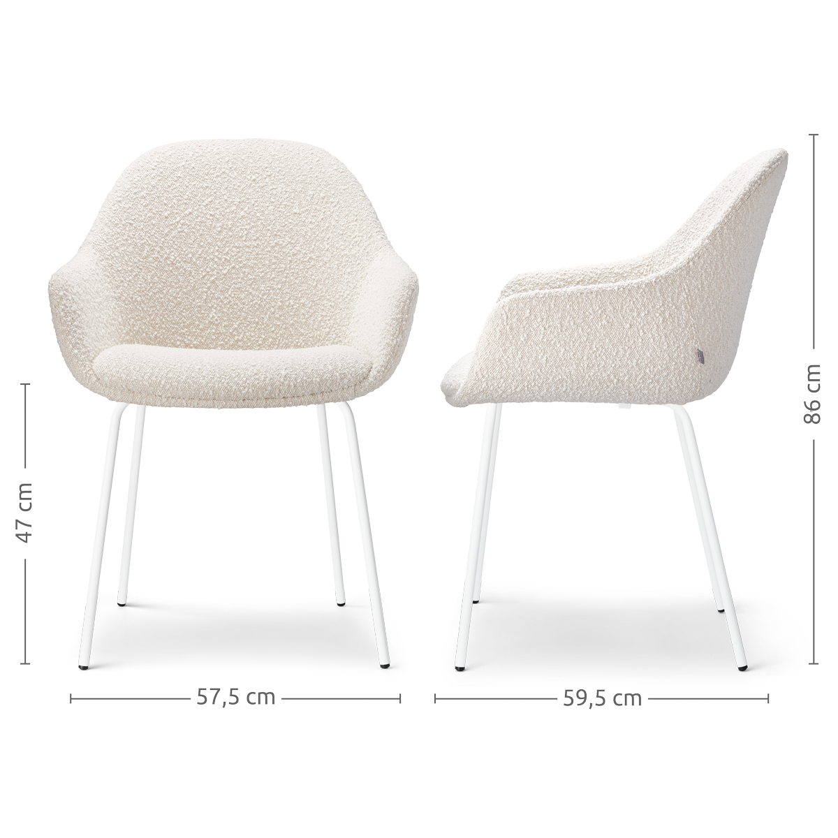 Nora Mae eetkamerstoel bouclé beige wit onderstel set van 2