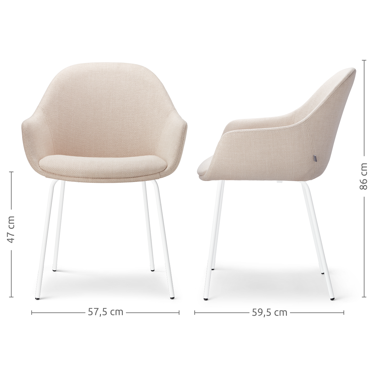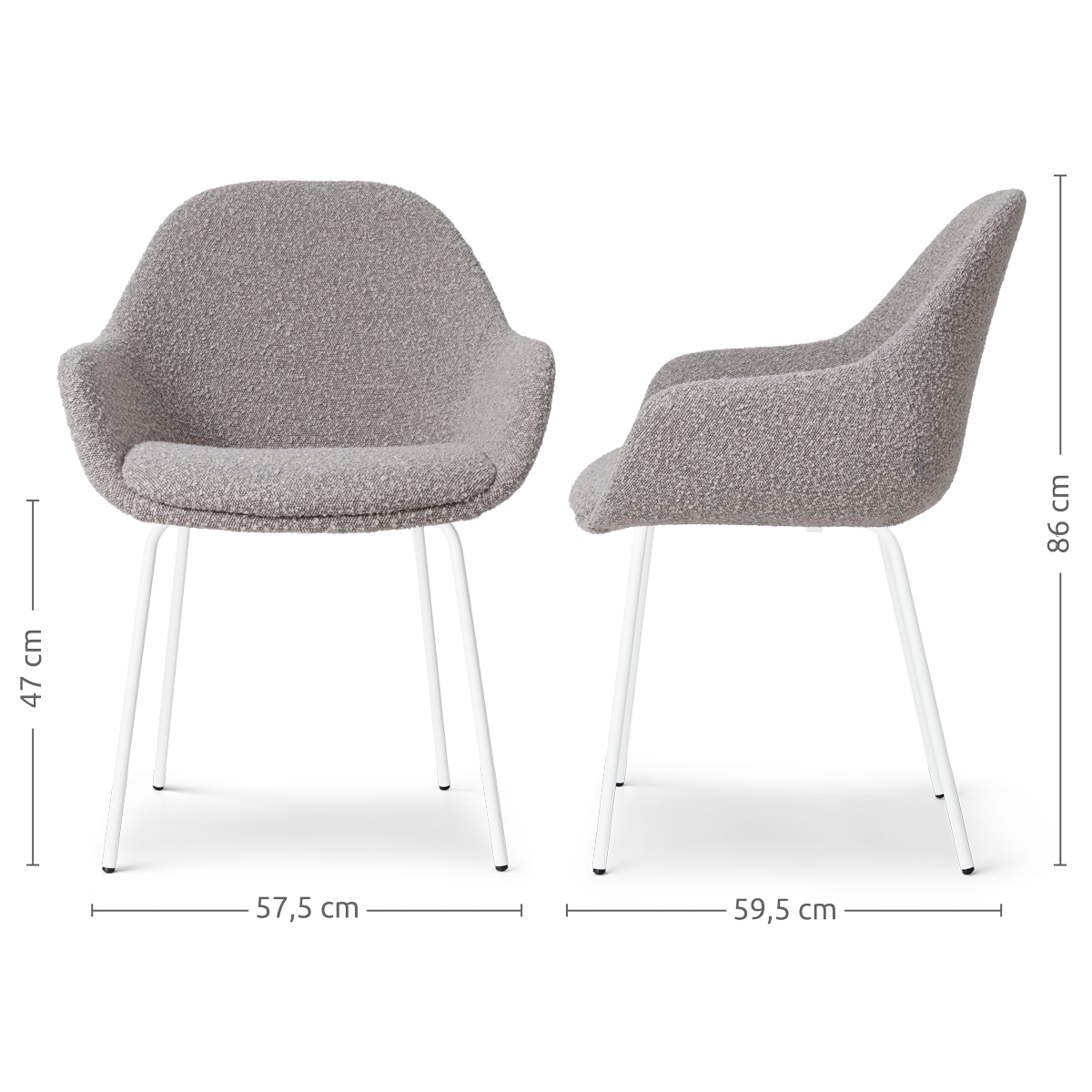 Creëer een stijlvolle en sfeervolle eethoek met de set van twee Nora-Mae eetkamerstoelen van Nolon. Deze eetkamerstoel is de ideale combinatie van een modern metalen onderstel met een uitnodigende stoffen zitting. Het ranke onderstel met de vier metalen poten zorgt voor een stabiele zit en geeft de eetkamerstoel de nodige elegantie. De kuipzitting is voorzien van armleuningen zodat urenlang natafelen een gemak is. De zitting van de Nora-Mae eetkamerstoel is verkrijgbaar in twee kleuren en twee verschillende materialen. Ga jij voor een luxe beige bekleding of durf je het aan met een bouclé eetkamerstoel? Welke variant je ook kiest, de Nora-Mae eetkamerstoel maakt van jouw eetkamer een warme en uitnodigende plek om samen te komen met vrienden en familie. Voordelen en tips Set van 2 eetkamerstoelen Het metalen onderstel heeft een minimalistisch en strak design De zitting is voorzien van een sterk houten binnenwerk en ergonomische