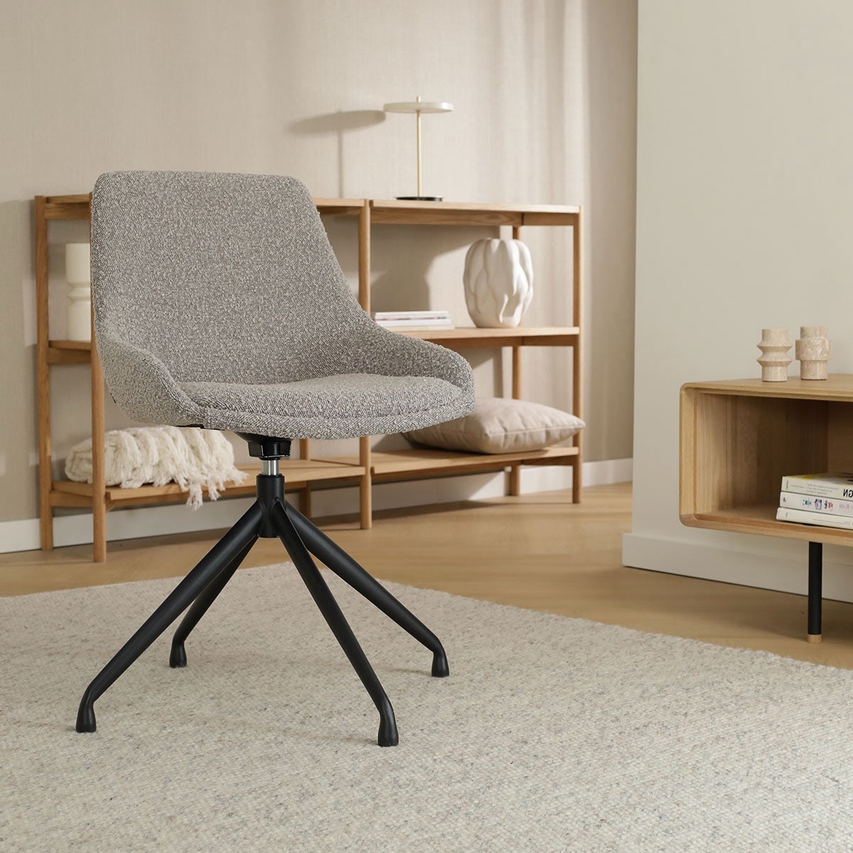 Nola Isa draaibare eetkamerstoel bouclé taupe zwart onderstel set van 2