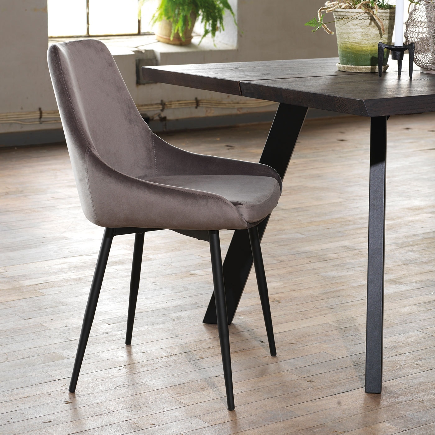 Baldwin eetkamerstoel velvet grijs metalen onderstel