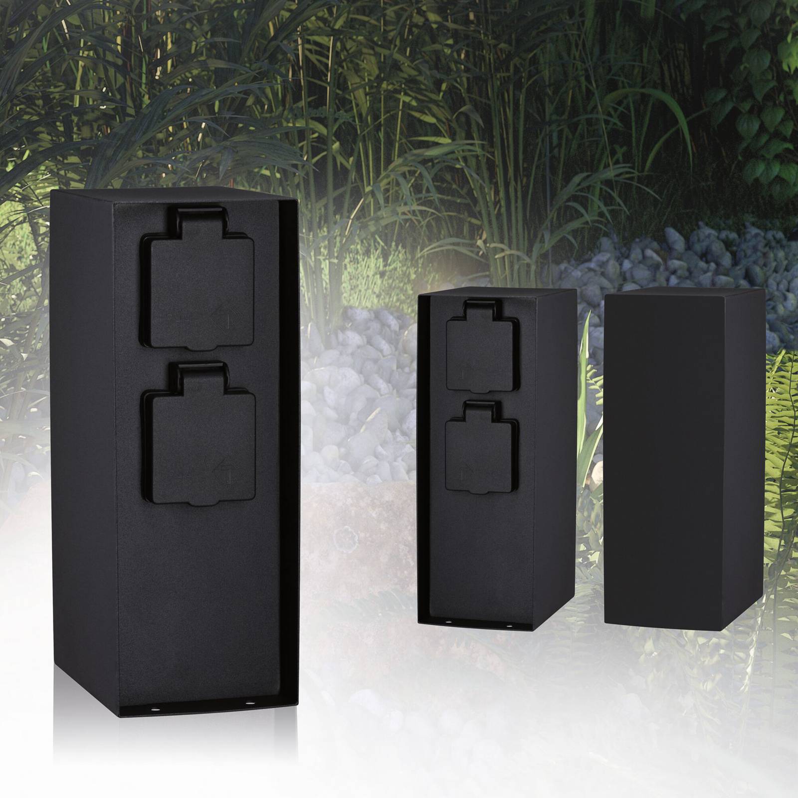 Rio stopcontactzuil met drie Schuko stopcontacten en schemersensor Die antracietkleurige Rio stopcontactzuil is gemaakt van roestvrij staal en is niet alleen uitgerust met drie geaarde stopcontacten, maar ook met een schemersensor. Hij is dus perfect voor het aansluiten van tuinverlichting en schakelt automatisch in bij schemering en weer uit als het licht wordt - beschermingsgraad IP44