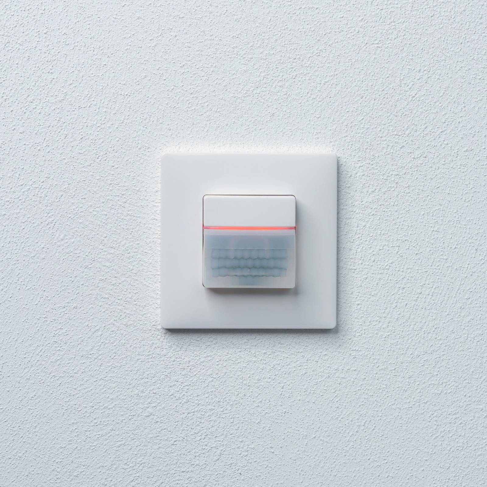 theRonda S360-100 UP - Passieve aanwezigheidsmelder (IR) voor plafondinbouwmontage DeRonda S360-100 passieve infrarood-aanwezigheidsdetector regelt automatisch de verlichting binnen en buiten, afhankelijk van de aanwezigheid van personen en de omgevingshelderheid. Hij wordt geïnstalleerd in een inbouwdoos (Ø 55 mm, NIS, PMI). De sensor is technisch overtuigend met een groot aantal functies, zoals de instelbare helderheidsschakelwaarde en de teach-in functie. De bediening is halfautomatisch of volautomatisch (omschakelbaar). De follow-up tijd kan worden verkort voor korte aanwezigheid. Het detectiegebied (360°) heeft een straal van ca. 9 m en bestrijkt een oppervlakte van ca. 64 m². Indien gewenst kan het detectiebereik worden verkleind door middel van de bijgevoegde clips. Als vooringestelde waarden en instellingen moeten worden gewijzigd, kan dit alleen met een van de als accessoire verkrijgbare afstandsbedieningen: Gebruikersafstandsbediening deSenda S, Serviceafstandsbediening deSenda P en App-afstandsbediening deSenda B. - Montagehoogte: 2 tot 4 m - Stroomverbruik: ~ 0.1 W - Instelbereik helderheid: 30 tot 3.000 lux, permanent aan - Looptijd licht: puls (0,5 s), 10 s - 60 min - Kanaal A licht: relais, 230 V - Volautomatische werking - Gemengde lichtmeting geschikt voor fluorescentielampen (FL/PL/ESL), halogeen-/ gloeilampen en LED's - Instelbare helderheidsschakelwaarde, teach-in functie - Testbedrijf mogelijk om functie en detectiebereik te controleren - Gloeilamp/halogeenlampbelasting: 2.300 W - Fluorescentie-, compacte/fluorescentielampen: 1.150 VA (cos φ = 0,5) - Inschakelstroom: max. 800 A/200µs - LED-lamp 2 W: 600 W - Aansluiting door middel van schroefklemmen - max. kabeldoorsnede: 2 x 2,5 mm² - Omgevingstemperatuur: - 15 °C tot + 50 °C - Beschermingsklasse: IP54 (indien geïnstalleerd)