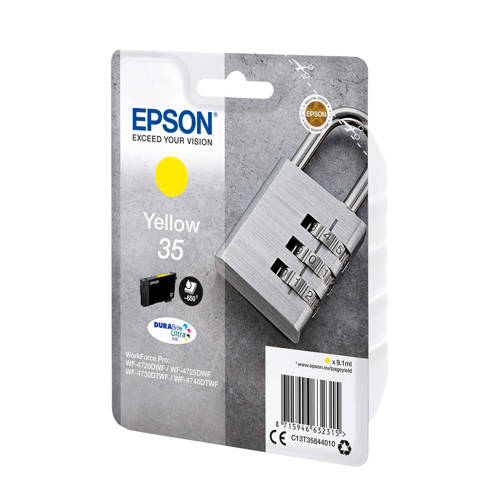 Deze Epson cartridge 35 DURABrite Ultra Ink (geel). Dankzij de inktformule op pigmentbasis zijn afdrukken bestand tegen water, vuil en markeerstiften en vanwege de sneldrogende eigenschappen is de inkt perfect voor dubbelzijdig afdrukken. Compatibele producten- WorkForce Pro WF-4740DTWF, WorkForce Pro WF-4725DWF, WorkForce Pro WF-4720DWF