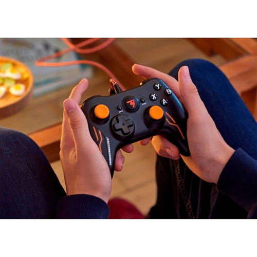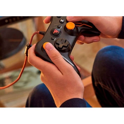 XInput (Xid) standaard ingebouwd in de gamepadPlug & Play: inpluggen en klaar voor gebruik: u hoeft niets te installerenWordt onmiddellijk herkend als een Xbox-gamepad in Windows: alle knoppen en assen worden toegewezen aan relevante functies en acties in games. Er hoeft geen setup te worden uitgevoerd.Een gestroomlijnd en ergonomisch ontwerp in Xbox One stijl zorgt voor een optimale en comfortabele grip, en voor snelle toegang tot alle functiesLinkerministick bovenin voor goede bereikbaarheid met linkerduimRechterministick iets naar beneden voor goede bereikbaarheid met rechterduimKruisvormige D-pad linksonder voor goede bereikbaarheid met linkerduim2 zeer nauwkeurige 16-bits ministicks: volledig progressief en met rubber bekleedGeoptimaliseerde bediening en zeer comfortabel2 keer nauwkeuriger*2 lange gebogen progressieve triggers met zichtbaar intern mechanisme : Verbeterde nauwkeurigheid en controle1 kruisvormige D-pad :Hogere nauwkeurigheid in alle 8 de richtingen12 perfect geplaatste digitale actieknoppen en een Windows Live-sneltoets*Uit tests blijkt dat deze ministicks (met geoptimaliseerde firmware) 2 keer nauwkeuriger zijn dan die van andere gamepads op de markt. Deze tests zijn uitgevoerd in het laboratorium en in FPS-games. Prestatiediagrammen zijn beschikbaar op www.thrustmaster.com.Gevlochten kabel van professionele kwaliteitStevig en van professionele kwaliteitPC-compatibel en Plug & Play in Windows Vista, 7, 8 en 10