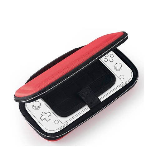 Wil je je Nintendo Switch Lite optimaal beschermen tegen allerlei invloeden van buitenaf? En zoek je ook een beschermhoes waar je gemakkelijk accessoires voor je Nintendo Switch Lite in kunt opbergen? Dan is deze stevige Nintendo Switch Lite beschermhoes de ideale keuze voor jou. In deze case kun je niet alleen je Switch Lite kwijt, maar is ook ruimte voor al je accessoires. Bovendien is deze robuuste, blauwe Nintendo Switch Lite case gemaakt van super stevig materiaal, waardoor je device én al je spulletjes optimaal beschermd zijn.Robuuste Nintendo Switch Lite caseDeze bescherm- en opberghoes voor je Nintendo Switch Lite is super sterk. Het doordachte ontwerp en het materiaal waarmee de sterke case is gemaakt, zorgt ervoor dat je je console schoon en onbeschadigd kunt houden. Het handvat aan de bovenkant zorgt ervoor dat je het console gemakkelijk mee kunt nemen. Bovendien is de binnenkant van de Nintendo Switch Lite case bekleed met een zachte stof om krassen op het scherm of controllers te voorkomen.Ruimte voor je Switch Lite én accessoiresJe Nintendo Switch Lite past perfect in de case en door het slimme ontwerp is er ook meer dan voldoende ruimte voor wat accessoires. Zo kun je ook je oplader, gamecards en spellen meenemen in deze strakke en stijlvolle, rode case. Het extra zachte flapje tussen het opbergvak voor je kabel en spellen en je console, zorgt ervoor dat de accessoires niet het scherm van je Nintendo Switch Lite beschadigen. Zo houd je je console én je accessoires mooi en netjes.De stevige rits waarmee je de Nintendo Switch Lite afsluit, zorgt ervoor dat er geen stof, vuil of andere viezigheid bij je device kan komen. Dus ook als je je Nintendo Switch Lite eventjes niet gebruikt, weet je zeker dat hij in topconditie blijft.Houd je Nintendo Switch Lite mooi en krasvrij met deze robuuste en stijlvolle Nintendo Switch Lite case.