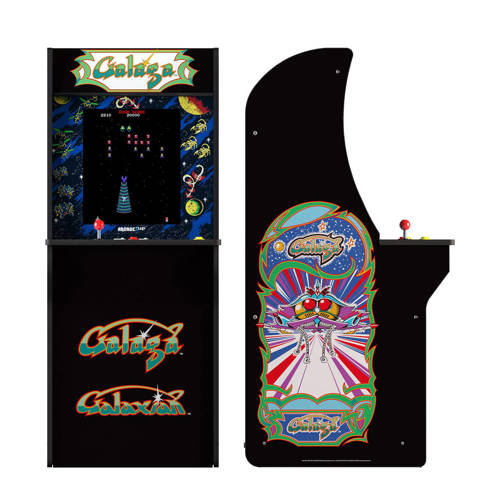 Arcade 1Up brengt je terug in de tijd vol adrenaline en ouderwets gaming plezier. Arcade 1Up speelkasten zijn beschikbaar in meerdere iconische versies: Street Fighter II, Galaga, Mortal Kombat en Pac-Man. Of je nu een retro-junk bent of nieuwsgierig bent naar de hype: dit is de perfecte manier om thuis of op kantoor van Arcade games te genieten. Het eindeloos gamen kan beginnen!De kasten zijn ruim 1,20 meter hoog en bevatten drie klassieke spellen. Alle machines hebben originele illustraties van de meest iconische games aller tijden. Met meeslepend full-color hi-res scherm en geluiden inclusief de originele joystick en bedieningsknoppen!De kasten zijn heel eenvoudig te monteren. Let op! Het monteren kan wat tijd innemen.Te bespelen games:- Galaga- GalaxianKenmerken:- Klassiek rechtopstaand ontwerp- Afmetingen: 1,21 x 0,60 x 0,48 m (h x b x w)- Gewicht: 26 kilo- 2 games in 1- 17' LCD kleurenscherm- Authentieke Arcade-bedieningselementen- Commerciële constructie- Origineel artwork- Muntloos werken- Volume kan worden aangepast- Spelmenu op het scherm- Wordt aangesloten op een stopcontact- Garantie en helpdesk