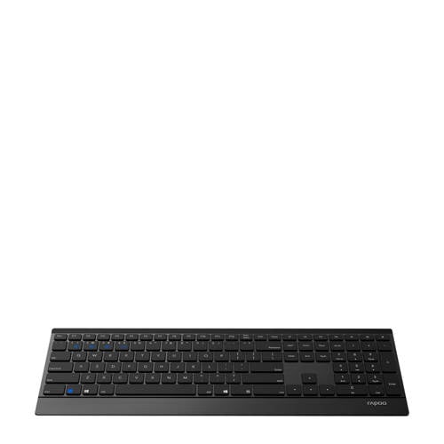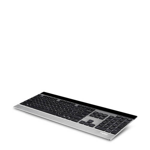 Ultradun maar stevig toetsenbord. Wordt geleverd met muis zodat je werkstation in één keer klaar is. Door de multi-mode wireless connection kan je de set met verschillende apparaten koppelen. Verbindingstechnologie: Bluetooth 3.0, Bluetooth 4.0, 2.4 GHz Stevig materiaalLaat je niet misleiden door het dunne formaat, want het toetsenbord is door het gebruikte roestvrijstaal en aluminium erg stevig.Wisselbare DPIDe meegeleverde muis is door de verschillende in te stellen DPI standen je beste kameraad tijdens het werken waardoor jij soepel de cursor over het scherm laat gaat.Lange batterijduurDe meegeleverde batterijen gaan door de energiebesparende techniek van Rapoo zo’n 12 maanden mee. Zo hoef je niet bang te zijn dat je opeens zonder stroom zit.Afmeting toetsenbord: 1,9x41x14,9 cm