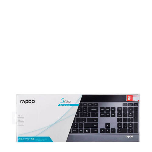 Het ultradunne 4 mm Rapoo E9270Pdraadloosze Qwerty toetsenbord kan je aansluiten door middel van een USB 2.0 ontvanger en is gemaakt van alluminium en is daardoor erg stevig en degelijk. Werkt op 2 AA batterij.
