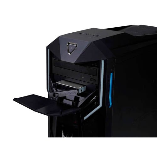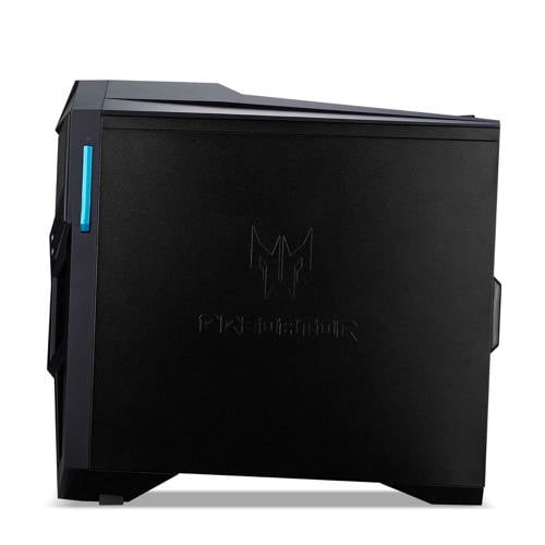 De Acer Predator Orion 5000 PO5-605S I9104 is een snelle gaming desktop met een 9e generatie Intel Core i7-9700K processor en een een superhoge framerate dankzij de NVIDIA GeForce RTX 2060 grafische kaart.NVIDIA RTX TechnologieGeForce RTX grafische kaarten worden aangestuurd door de Turing GPU-architectuur en het gloednieuwe RTX-platform. Zo profiteer je van zes keer zo hoge prestaties dan met grafische kaarten van de vorige generatie. Bovendien kun je gamen met realtime ray tracing en AI.Perfecte koelingDe Orion heeft zo'n extreme processor dat de beste keuze voor een koeler heel eenvoudig is: de AIO (All-in-One) Cooler Master CPU Liquid Cooler. Combineer dit met strategisch geplaatste inlaten en uitlaatventilatoren in de behuizing en een afgeschermde PSU, en je hebt een systeem dat gebouwd is om te presteren.Iconische Predator behuizingDe Orion-desktop ademt de Predator-stijl met scherpe hoeken en zwart metaal. Het eenvoudig te verwijderen EMI-gecertificeerde zijpaneel geeft je niet alleen een glimp van de binnenkant, maar vermindert bovendien inkomende/uitgaande elektromagnetische interferentie.Alle kleurenKies een patroon dat bij jouw stijl of je favoriete game past. Lichtbalken en behuizingsventilatoren in de geharde behuizing produceren maar liefst 16,7 miljoen kleuren.Specificaties- Besturingssysteem: Windows 10 Home- Architectuur besturingssysteem: 64-bit- Processorfamilie: Intel Core i7- Processormodel: i7-9700K- Processor frequentie: 3.6 GHz- Processor turbofrequentie (max): 4.9 GHz- Aantal processorkernen: 8- Aantal processor threads: 8- Aantal geïnstalleerde processoren: 1- Processor cache: 12 MB- Chipset moederbord: Intel Z390 - Intern geheugen: 16 GB- Intern geheugentype: DDR4-SDRAM- Kloksnelheid geheugen: 2666 MHz- Geheugenlayout: 2 x 8 GB- Maximum intern geheugen: 64 GB- Totale opslagcapaciteit: 2256 GB- HDD capaciteit: 2000 GB- SSD capaciteit: 256 GB- Aantal storage drives geïnstalleerd: 2- Aantal geïnstalleerde HDD: 1- Aantal geïnstalleerde SSD: 1- HDD interface(s): SATA- Harde schijf, omvang: 3.5 inch- Soort optische drive: DVD-RW- Aantal optische drives: 1- Discreet grafisch adapter model: NVIDIA GeForce RTX 2060- On-board grafisch adapter model: Intel UHD Graphics 630- Wi-Fi- Ethernet LAN- Bluetooth- Wi-Fi standaard(en): 802.11ac- Ethernetsnelheid: 10, 100, 1000 Mbit/s- Microfooningang- Aantal HDMI poorten: 1- Aantal Ethernet LAN poorten: 1- Aantal USB : 12- Aantal hoofdtelefoon uitgangen: 1- Stroomverbruik (max): 730 Watt- Energy Star-certificaatAfmetingen en gewicht- Afmetingen (hxbxd): 56,3x25,3x52 cm- Gewicht: 17 kg