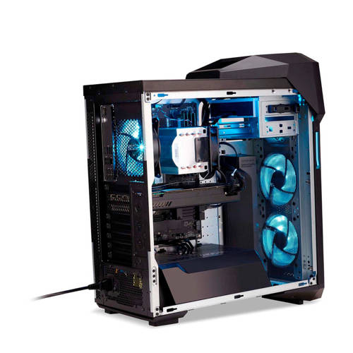 De Acer PREDATOR ORION 5000 610 I9207-S is een snelle gaming desktop met een 9e generatie Intel Core i7-9700K processor en een een superhoge framerate dankzij de NVIDIA GeForce RTX 2070 Super grafische kaart.NVIDIA RTX TechnologieGeForce RTX grafische kaarten worden aangestuurd door de Turing GPU-architectuur en het gloednieuwe RTX-platform. Zo profiteer je van zes keer zo hoge prestaties dan met grafische kaarten van de vorige generatie. Bovendien kun je gamen met realtime ray tracing en AI. Perfecte koelingDe Orion heeft zo'n extreme processor dat de beste keuze voor een koeler heel eenvoudig is: de AIO (All-in-One) Cooler Master CPU Liquid Cooler. Combineer dit met strategisch geplaatste inlaten en uitlaatventilatoren in de behuizing en een afgeschermde PSU, en je hebt een systeem dat gebouwd is om te presteren.Iconische Predator behuizingDe Orion-desktop ademt de Predator-stijl met scherpe hoeken en zwart metaal. Het eenvoudig te verwijderen EMI-gecertificeerde zijpaneel geeft je niet alleen een glimp van de binnenkant, maar vermindert bovendien inkomende/uitgaande elektromagnetische interferentie.Alle kleurenKies een patroon dat bij jouw stijl of je favoriete game past. Lichtbalken en behuizingsventilatoren in de geharde behuizing produceren maar liefst 16,7 miljoen kleuren.